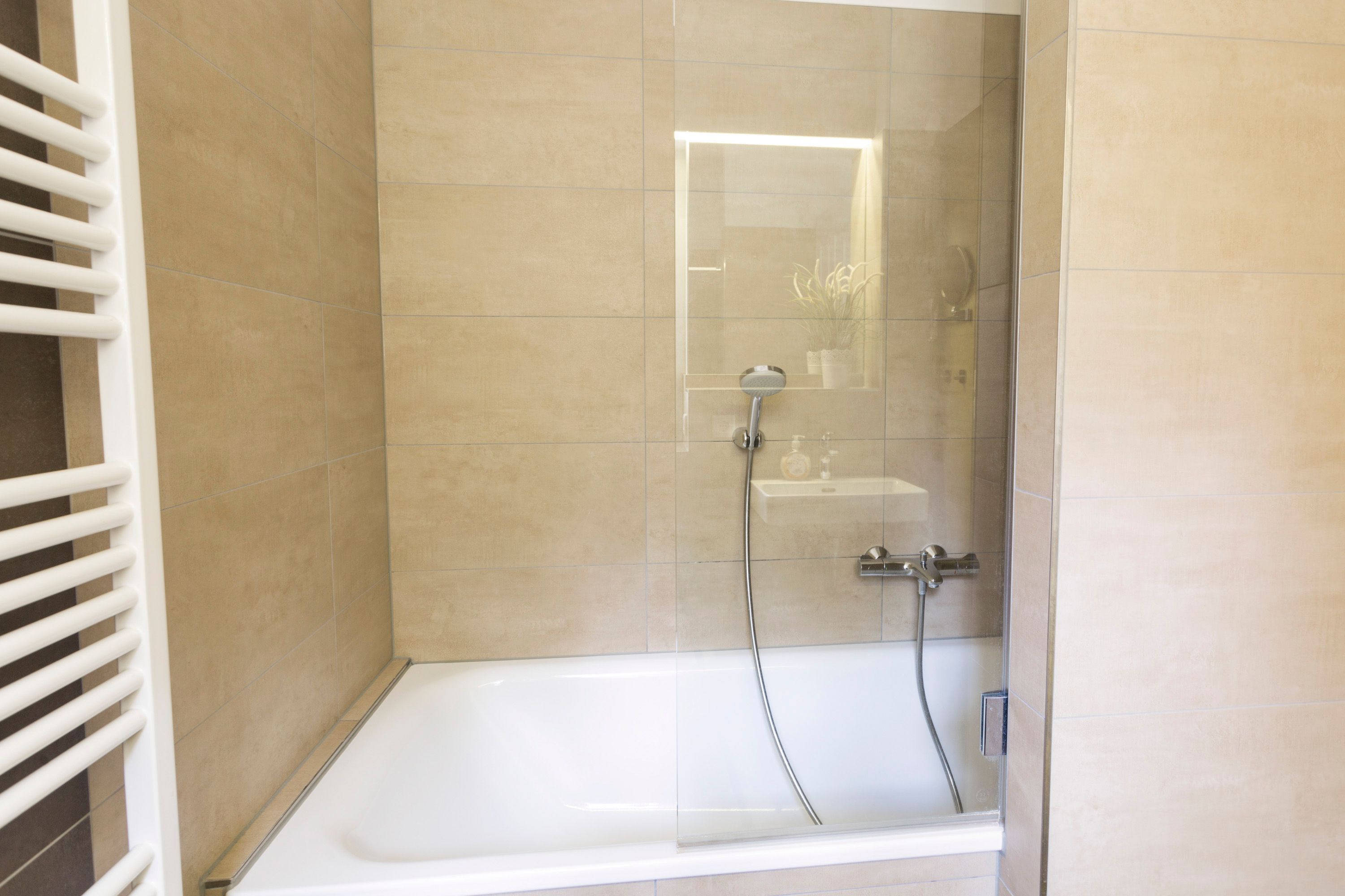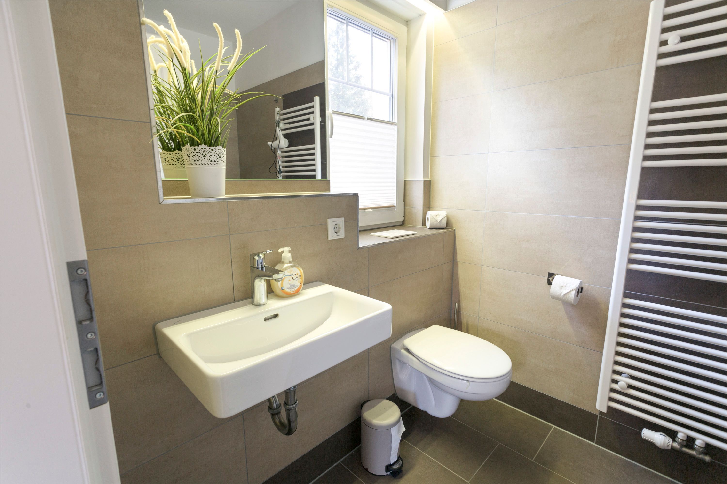 Ein Badezimmer ist mit Badewanne, Föhn und WC ausgestattet, das 2. Badezimmer mit Dusche, Föhn und WC, Waschtrockner und eigener Sauna, welche kostenfrei zur Verfügung steht.