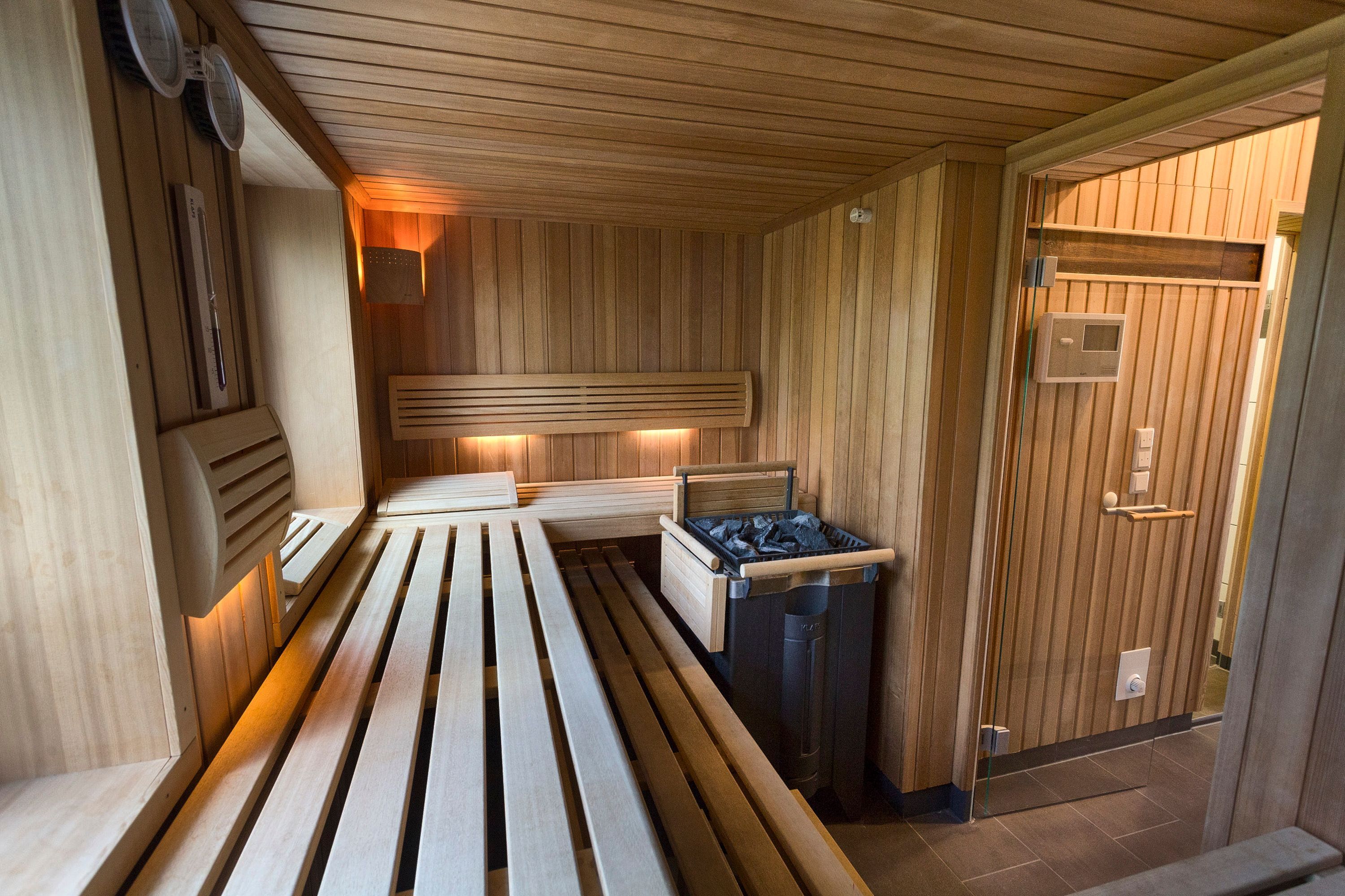 Im Dachgeschoss befindet sich ein 40m² großer Schlafraum/Saunabereich mit separater Dusche (nicht ebenerdig), separatem WC und frei zugänglichen Ruheliegen, Zugang zum Balkon und offen gestaltetem Schlafbereich mit zwei Einzelbetten und TV.