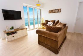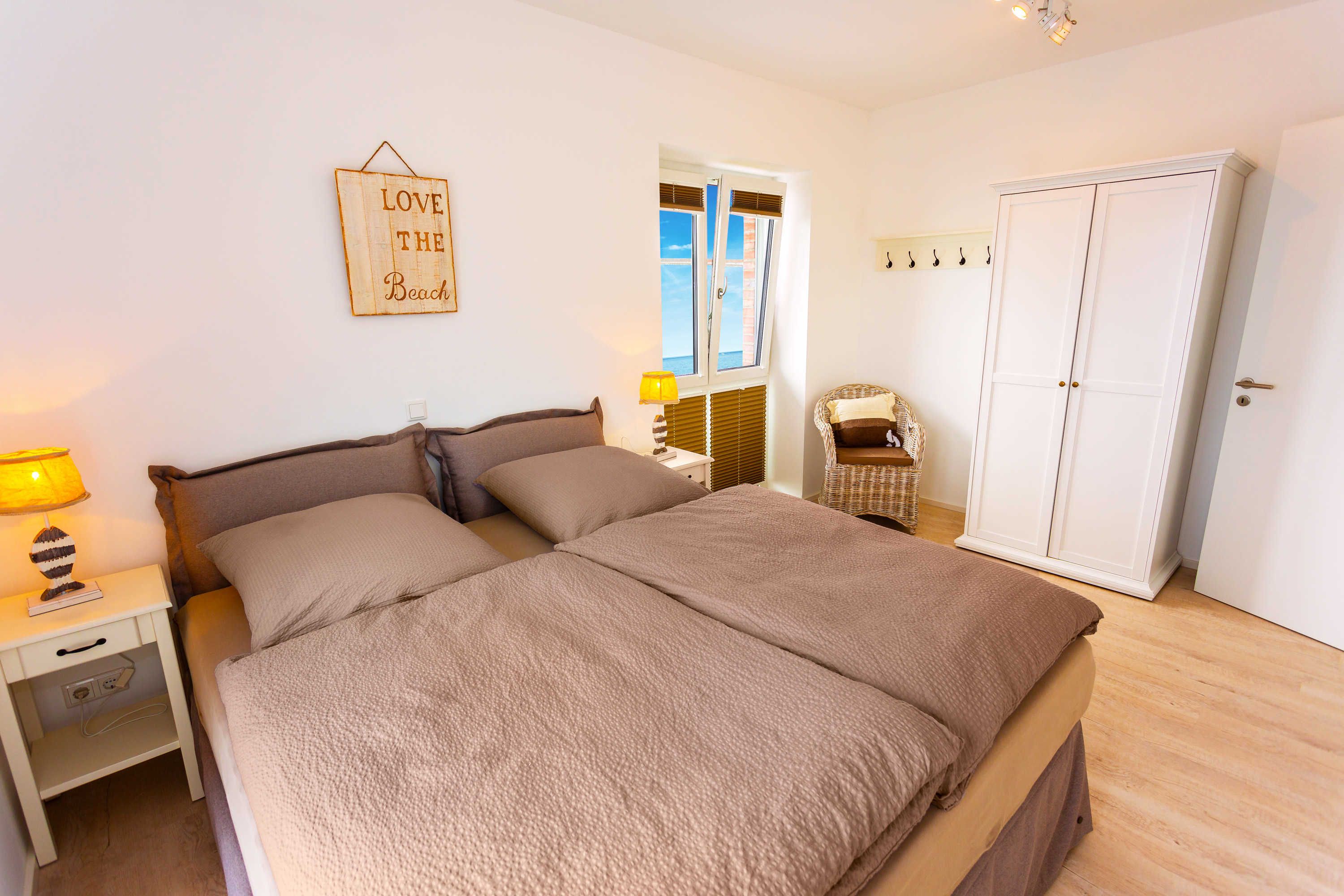 Das von Meer-Ferienwohnungen angebotene Appartement besticht durch eine atemberaubende Lage mit direktem Meerblick. Die hochwertig ausgestattete Wohnung besteht aus einem Wohnzimmer mit Küche und Balkon, zwei Schlafzimmern und zwei Bädern. Im Kellergeschoss befindet sich eine Gemeinschaftssauna. Eine Parkmöglichkeit ist selbstverständlich vorhanden.