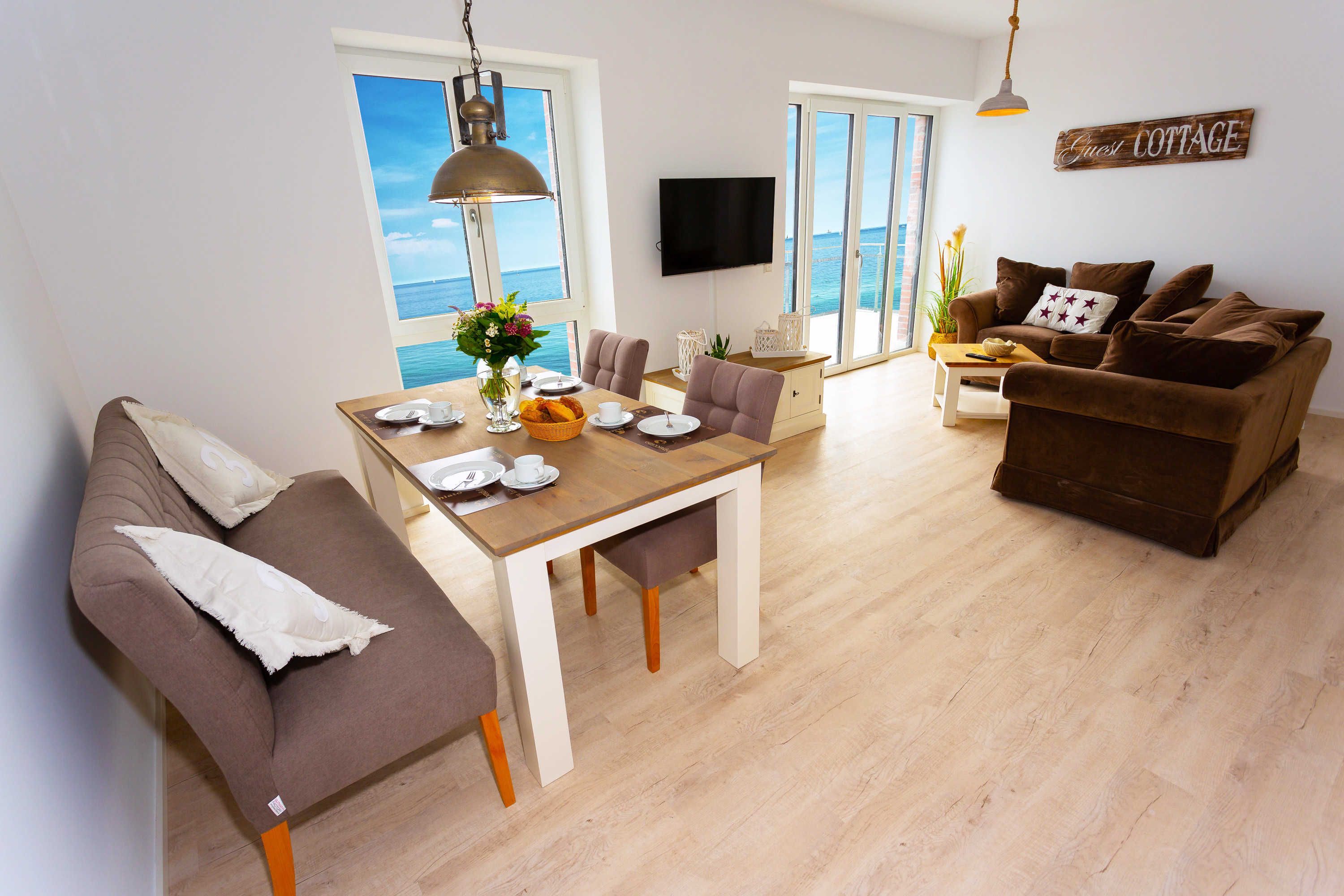 Die Komfort-Ferienwohnung Waterkant befindet sich in dem durch einen Aufzug erreichbaren 1. Obergeschoss vom Molenhuus, das nur 6 Meter (!) von der Ostsee entfernt liegt. Die Wohnung bietet Platz für bis zu 4 Personen und ist exzellent und sehr hochwertig ausgestattet.