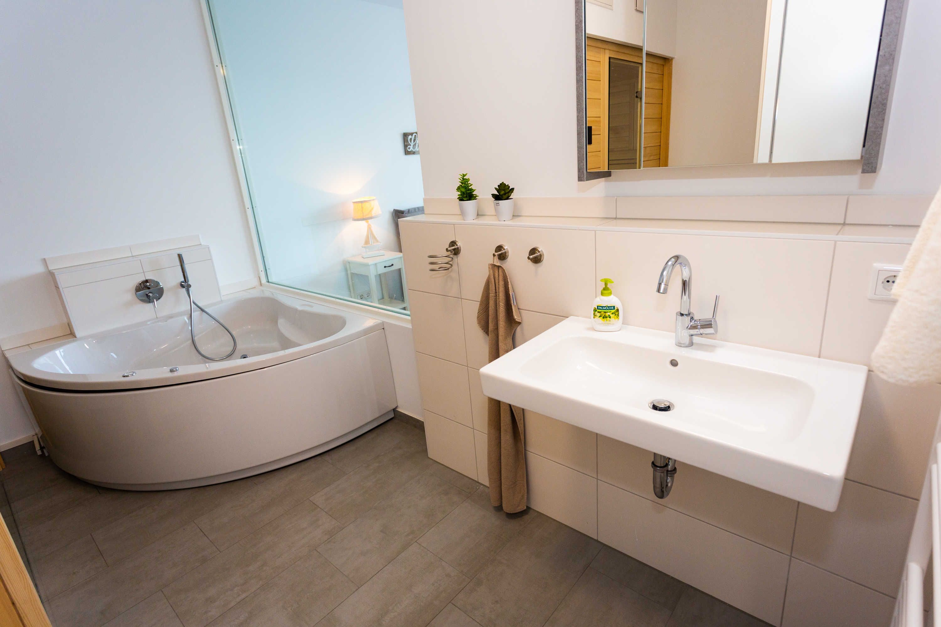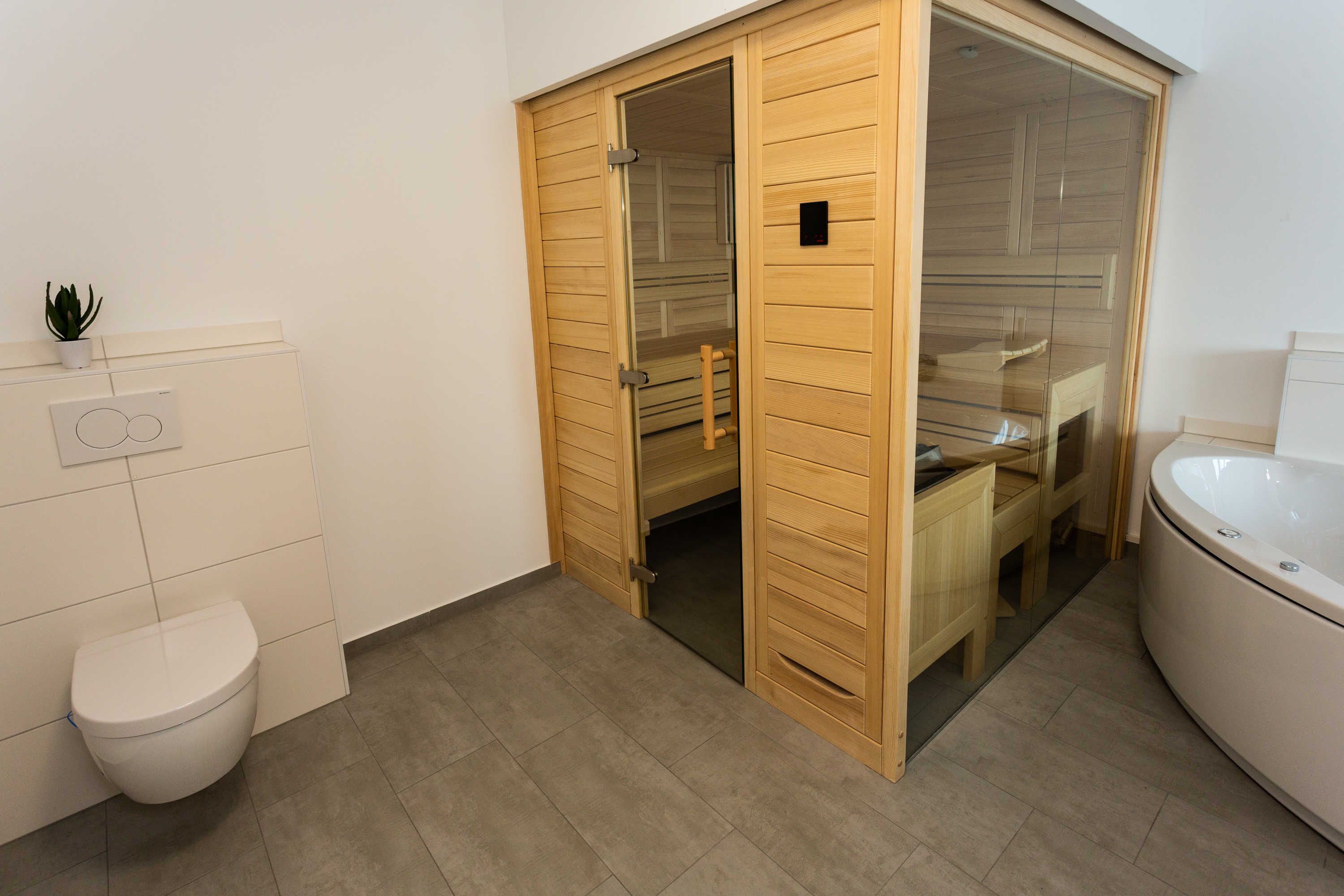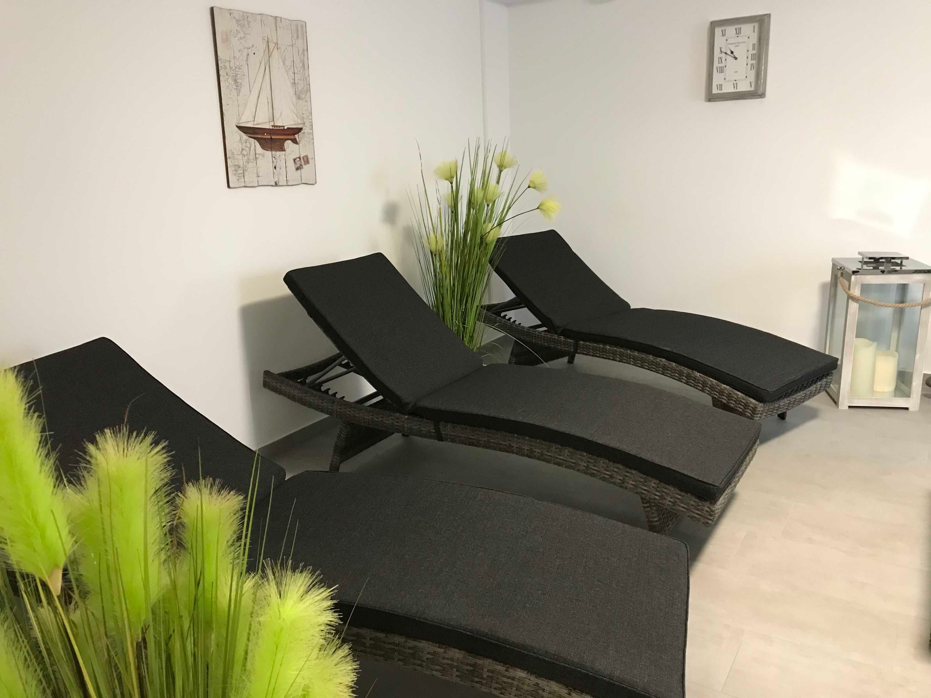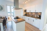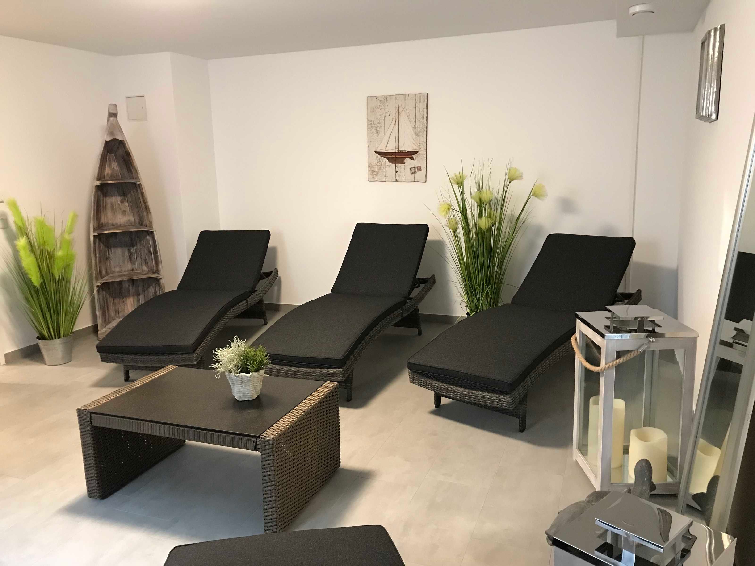 Ein geschmackvoll eingerichtetes Wohnzimmer mit einer kuscheligen Couchgarnitur bietet Ihnen einen traumhaften, direkten und wohl einzigartigen Meerblick. Es schließt sich eine sehr große Dachterrasse an, auf dem sich der atemberaubende Blick auf die Ostsee im Freien genießen lässt. Zu der komplett ausgestatteten Küche gehören der einladende Esstisch samt gemütlicher Bestuhlung, ein Kühlschrank mit Gefrierfach, ein Backofen, eine Mikrowelle, ein Geschirrspüler und selbstverständlich weitere Küchenutensilien. Zwei gemütliche Schlafzimmer - davon eins mit Meerblick - sind mit jeweils einem Boxspring-Doppelbett eingerichtet. Des Weiteren gehören ein Duschbad sowie ein weiteres Bad mit eigener Sauna, aus der Sie ebenfalls freien Blick auf die Ostsee haben, und Badewanne zur Ferienwohnung.