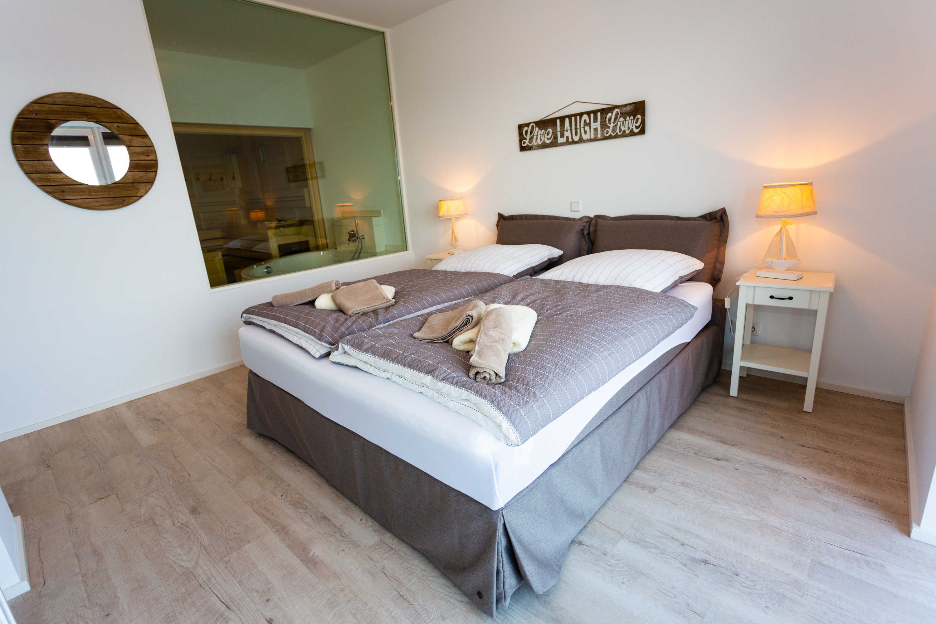 Das von Meer-Ferienwohnungen angebotene Appartement besticht durch eine atemberaubende Lage mit direktem Meerblick. Die hochwertig ausgestattete Wohnung besteht aus einem Wohnzimmer mit Küche und Dachterasse, zwei Schlafzimmern und zwei Bäder. In der Wohnung befindet sich eine Sauna. Eine Parkmöglichkeit ist selbstverständlich vorhanden.