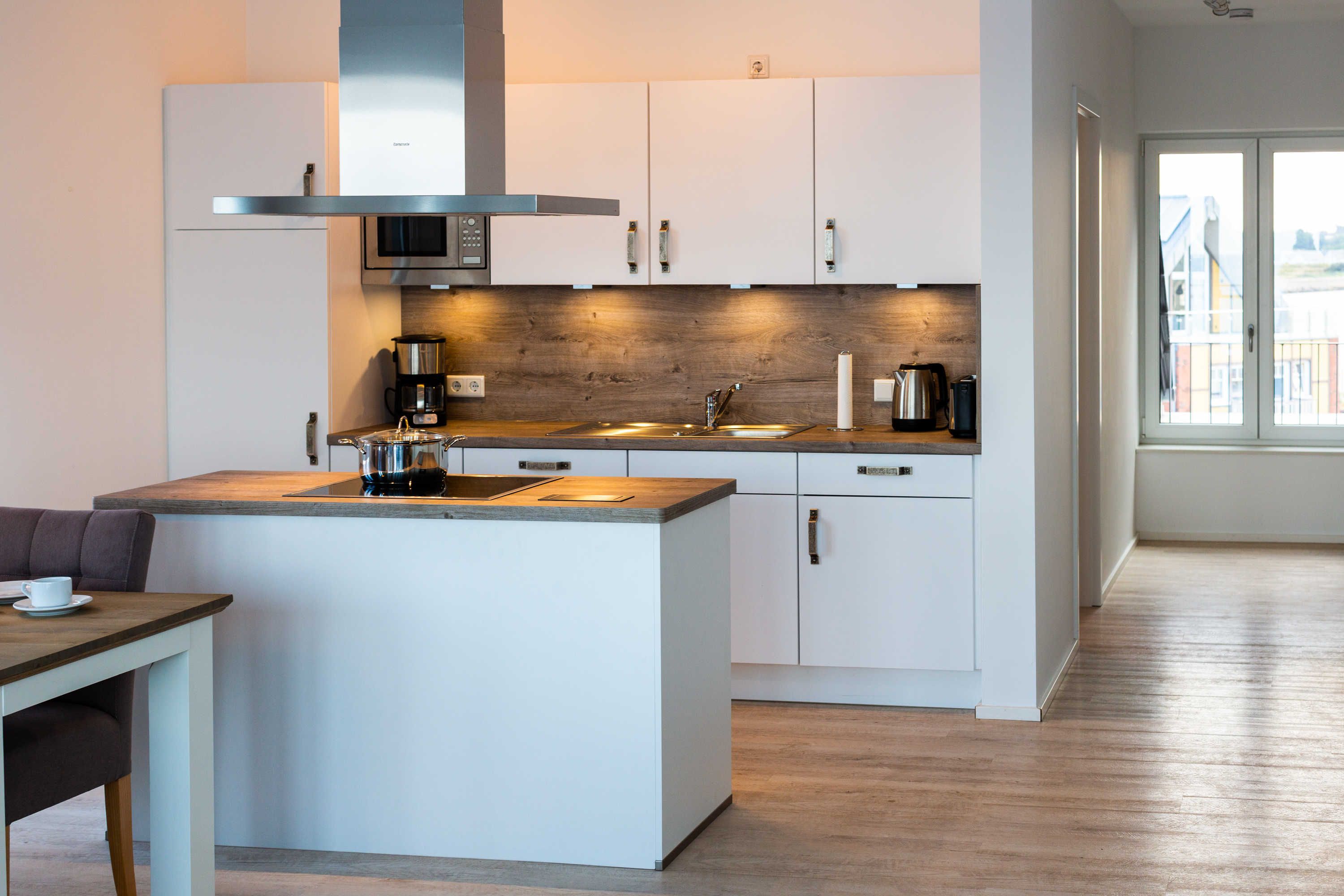 Dat Penthuus befindet sich in dem durch einen Aufzug erreichbaren 3. Obergeschoss vom Molenhuus, das nur 6 Meter (!) von der Ostsee entfernt liegt. Die Wohnung bietet Platz für bis zu 5 Personen und ist exzellent und sehr hochwertig ausgestattet.