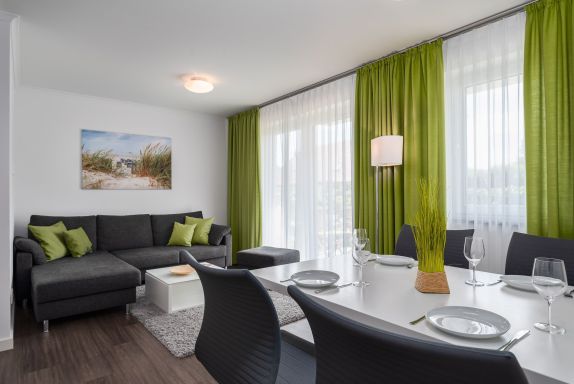 Im Villenensemblé Rosengarten in Börgerende haben wir für Sie im Haus Alizé eine strandnahe und sonnige 3-Zimmer-Ferienwohnung mit ca. 56 qm eingerichtet, die Platz für 3 Erwachsene oder 2 Erwachsene mit 2 Kindern bietet.