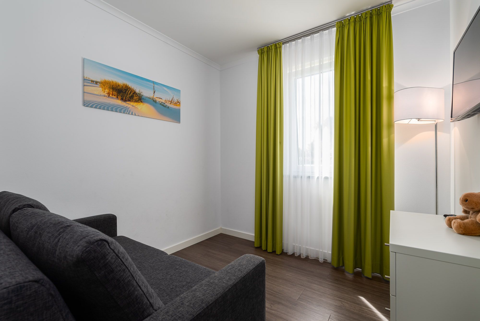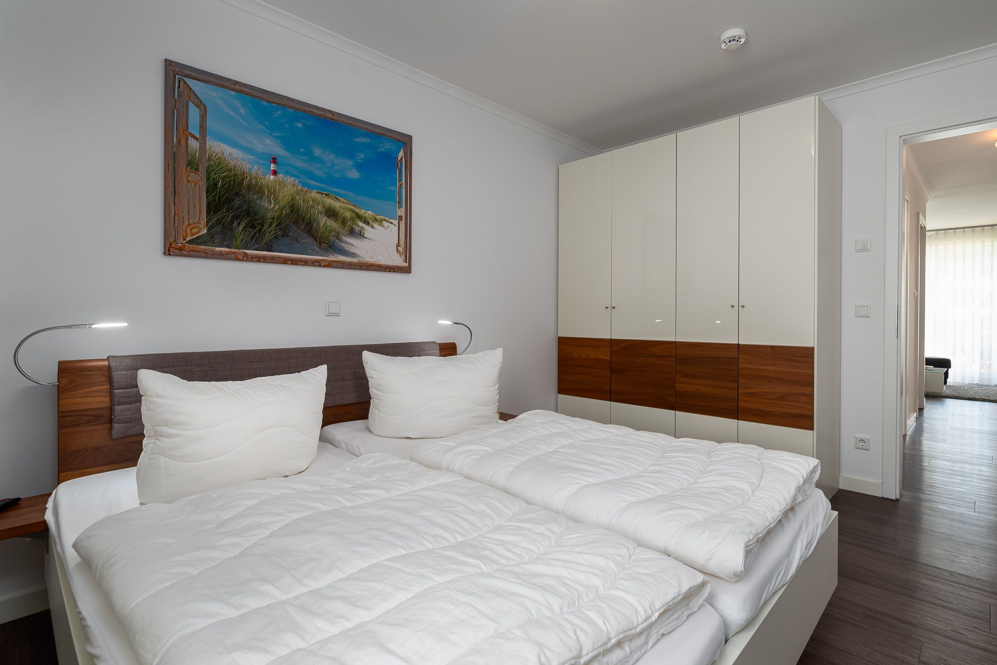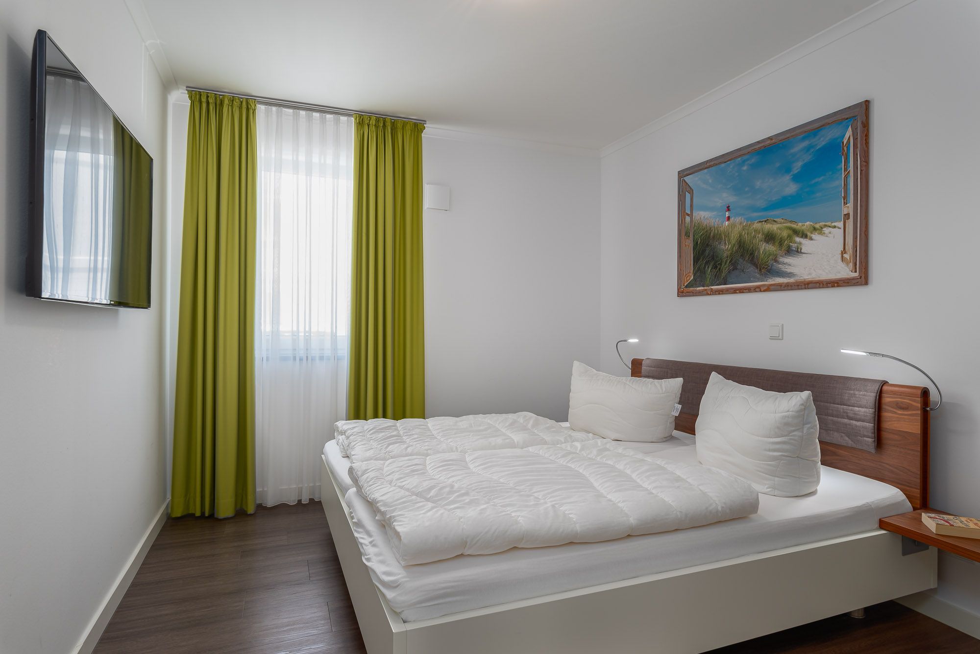 Im ersten Schlafzimmer finden Sie ein komfortables Doppelbett (180 cm x 200 cm / zwei 7-Zonen-Matratzen) mit integrierten Leselampen sowie einen geräumigen viertürigen Kleiderschrank. Auch hier steht Ihnen ein 50“ Smart-TV zur Verfügung. Das zweite Schlafzimmer ist mit Bedacht auf die jüngeren Familienmitglieder mit einer hochwertigen Schlafcouch (integrierter Matratze 150 cm x 200 cm inkl. Lattenrost) so eingerichtet, dass auch hier die Möglichkeit besteht, genügend Platz zum Spielen und Chillen zu finden. Im Siteboard ist zusätzlicher Stauraum vorhanden. Des Weiteren ist hier ebenfalls ein 32“ Smart-TV vorhanden.