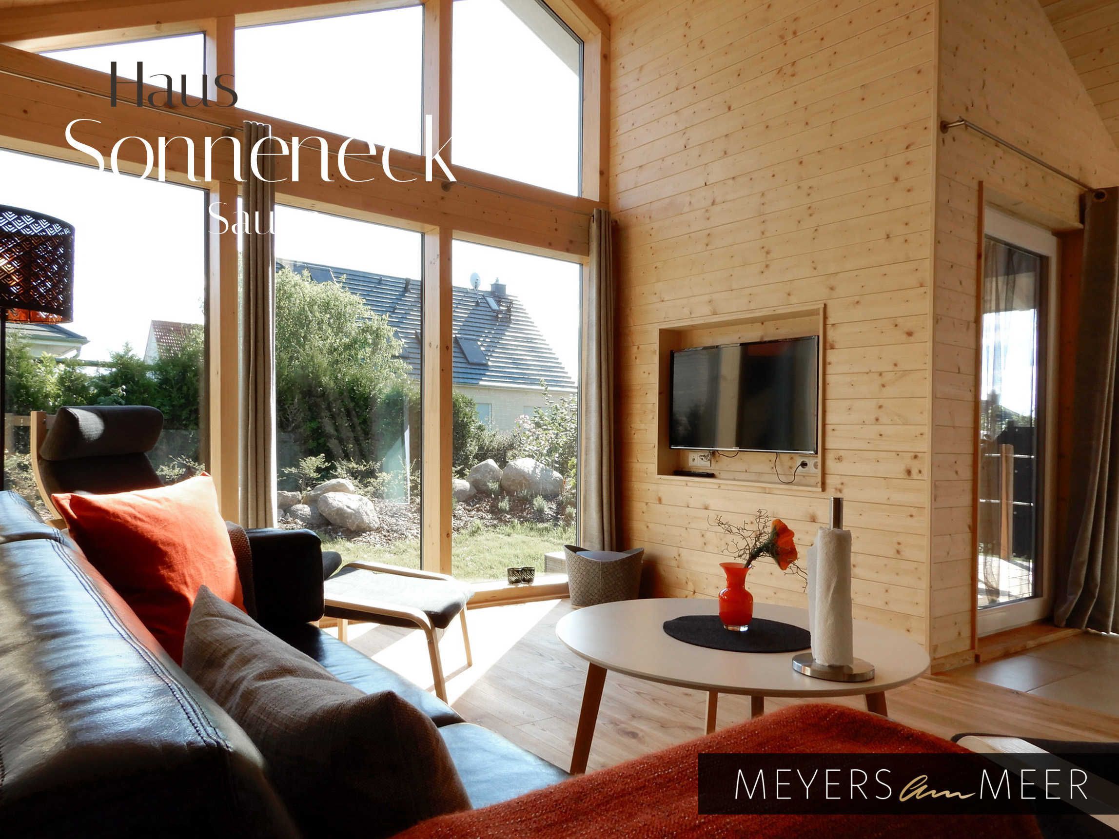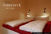 Sie mieten das ca. 60 Quadratmeter große Häuschen Z5. Herzstück darin ist die offene Wohnküche. Im Wohnbereich können Sie auf einem Sofa oder zwei Relaxsesseln entweder vor dem SAT TV entspannen, ein schönes Buch lesen oder einfach nur aus den Panoramafenstern schauen. Bodenlange Vorhänge schirmen die Sonne ab. Der Holzfußboden sorgt für eine angenehme Atmosphäre, maßangefertige Einbaumöbel schaffen Platz auf kleinem Raum. Geheizt wird mittels Erdwärme, Strom kommt von Greenpeace Energy.