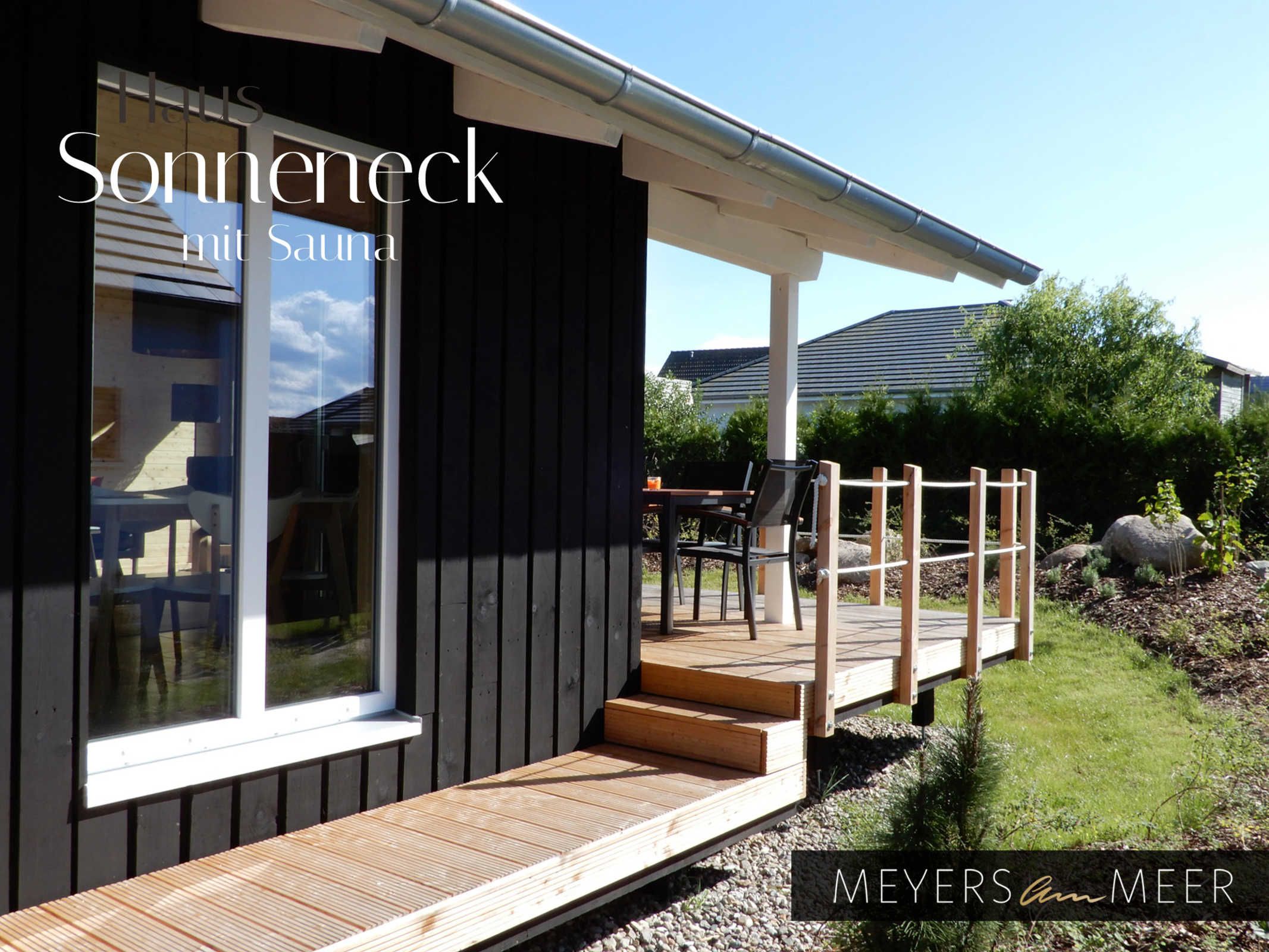 Auf nischigen, überdachten Holzterrassen können Sie bis in die Morgenstunden miteinander klönen. In den Sommermonaten finden Sie hier Möbel und einen Grill.