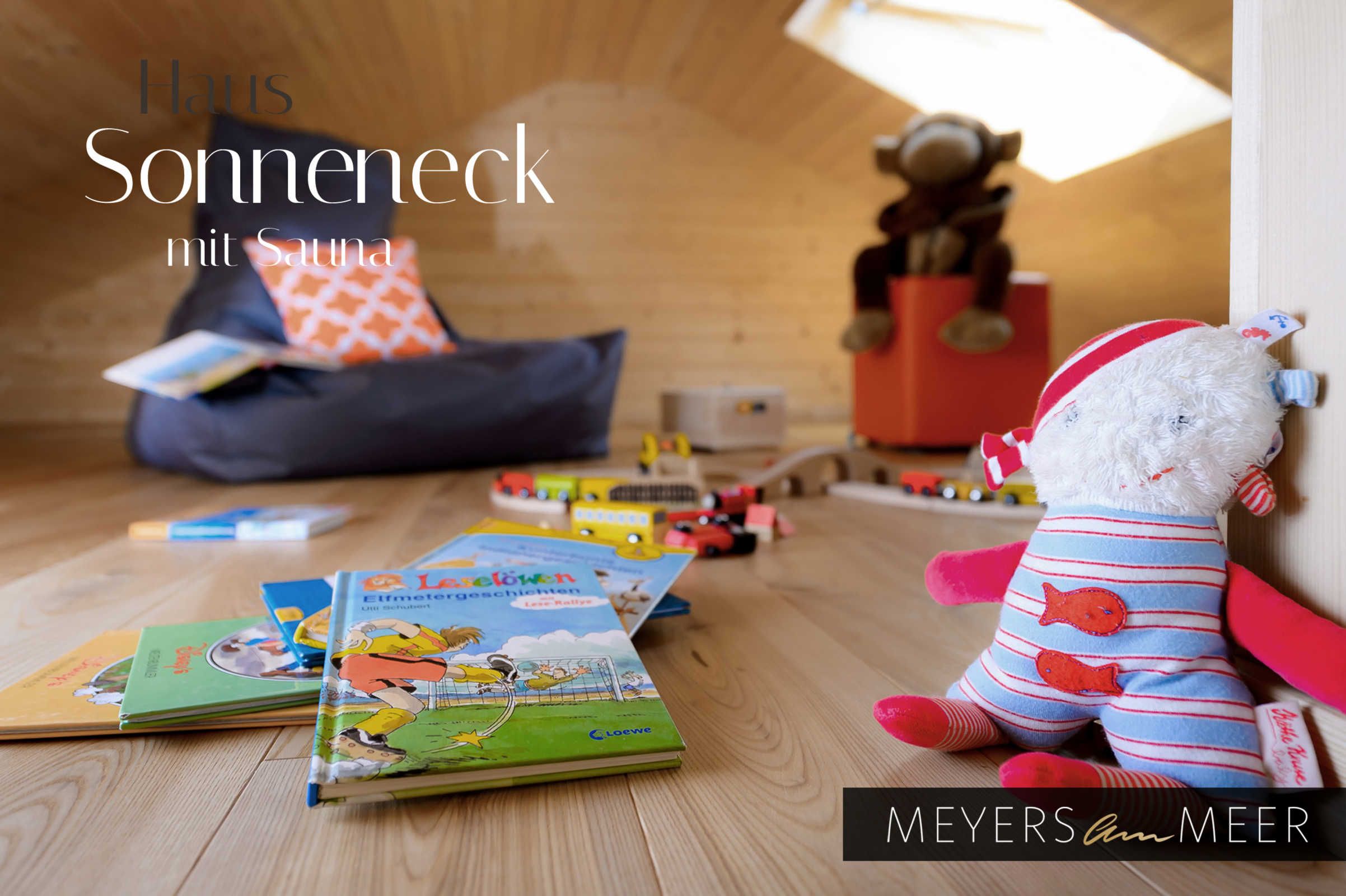 Ein zum Wohnraum hin offener Schlaf-/Spielboden erfüllt Kindheitsträume! Es gibt Kinderspielzeug, Kinderbücher und Gesellschaftsspiele für Jung und Alt. Auf Wunsch bereiten wir auf dieser nicht durch eine Tür verschließbaren offenen Galerie bis zu zwei Aufbettungen in Form von zusätzlichen Matratzen (15 EUR/Nacht und Gast) vor. Kinder lieben es!