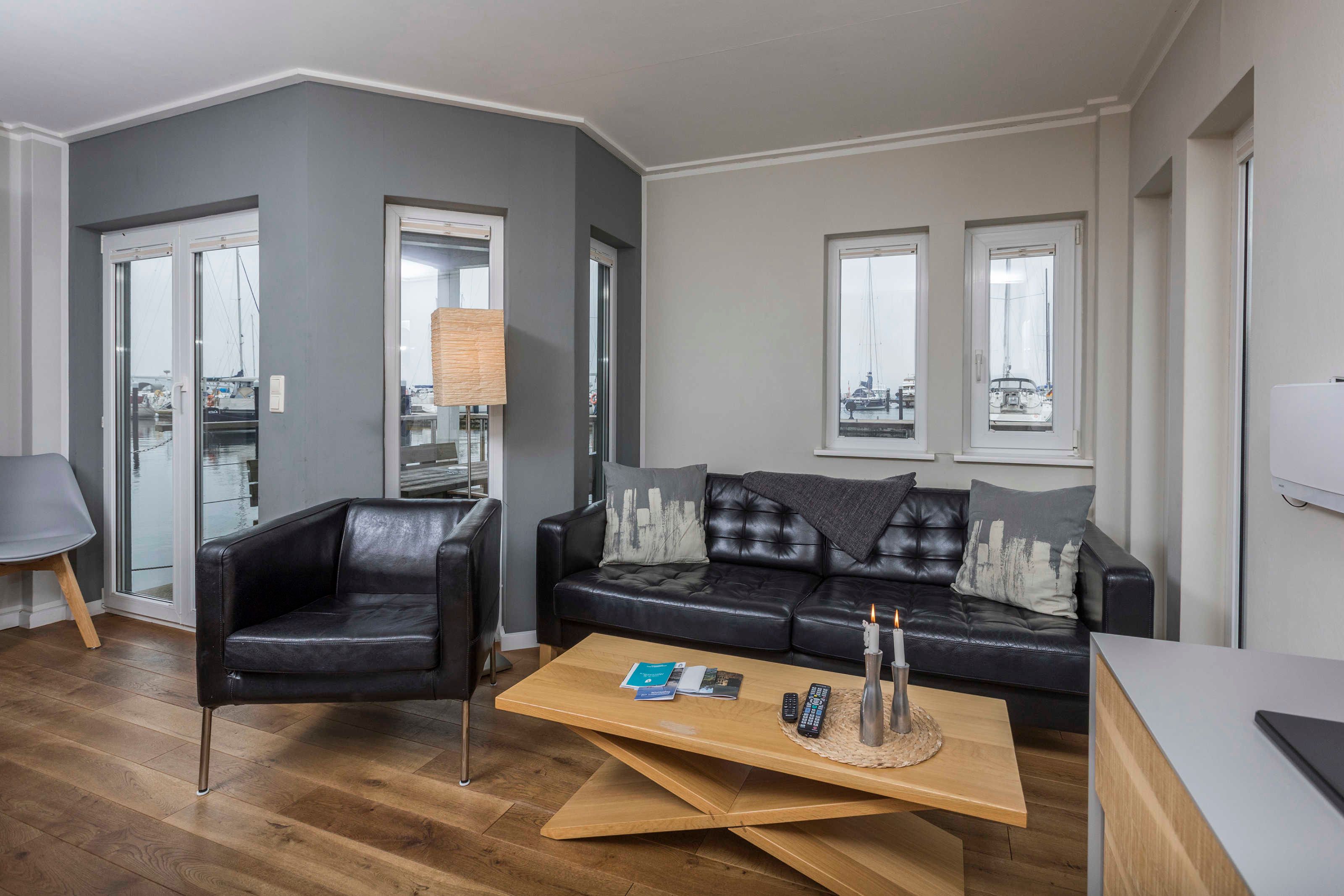 mit Etagenbett, Bad mit Dusche, Badeterrasse, Balkon und Liegeplatz | 72 m2 für 6 Pers.