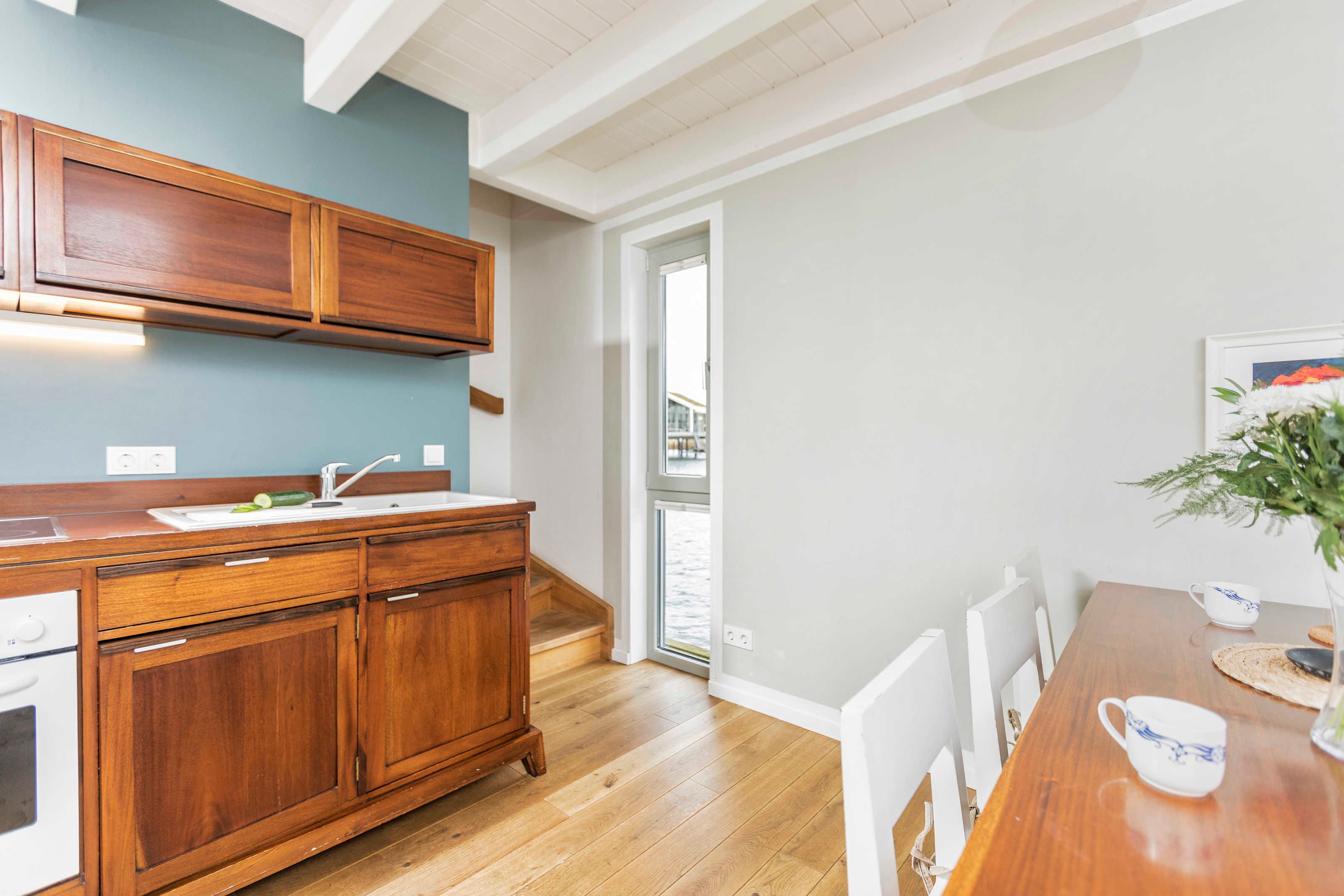 4 Räume auf 2 Etagen – Küche und Wohnraum, 2 Schlafräume mit Doppelbett / franz. Bett, Kinderzimmer