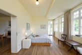 Das Gutshaus überzeugt weiterhin durch die mit viel Liebe zum Detail sanierte denkmalgeschützte Fassade, eine sehr liebevolle Einrichtung mit zum Teil antiken Einrichtungsgegenständen und der Verwendung von hochwertigen und ökologischen Baumaterialen (z.B. Eichenholz-Fußboden, Allergiker-freundliche Farben).