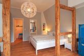Eines mit Doppelbett, Kleiderschrank und Fernseher. Von diesem 1.Schlafzimmer betritt man das kleinere 2. Schlafzimmer, das mit einem Etagenbett möbliert ist. Zur Wohnung gehört ein modernes Tageslichtduschbad mit ebenerdiger Regenwalddusche, Waschtisch, Föhn, WC. Die Nutzung einer Waschmaschine ist im Hause möglich. PKW Außenstellplatz kostenfrei. Nichtraucher. Keine Haustiere.
