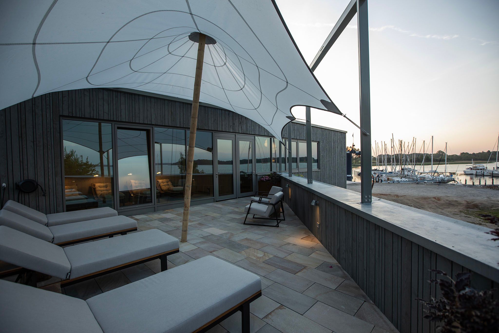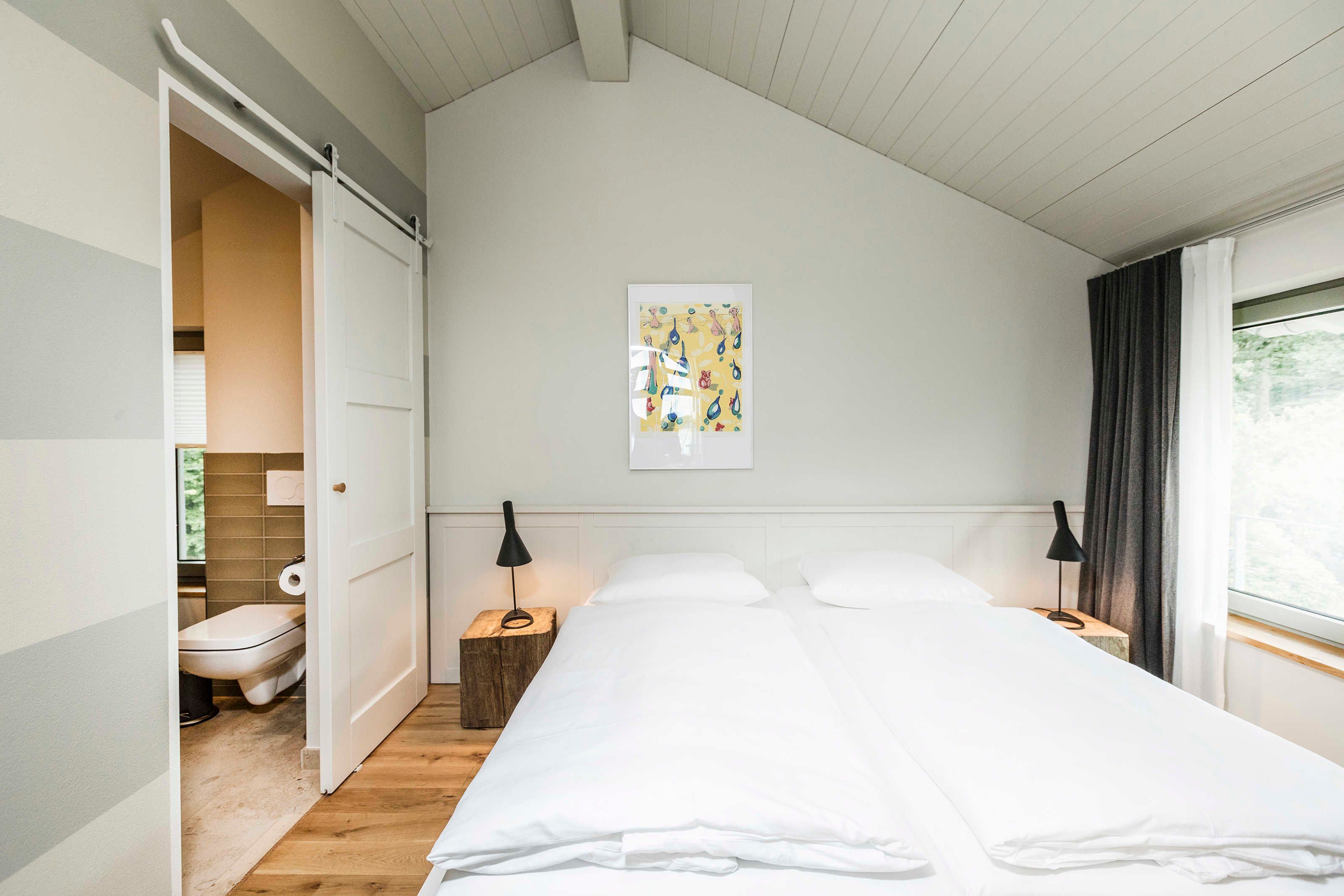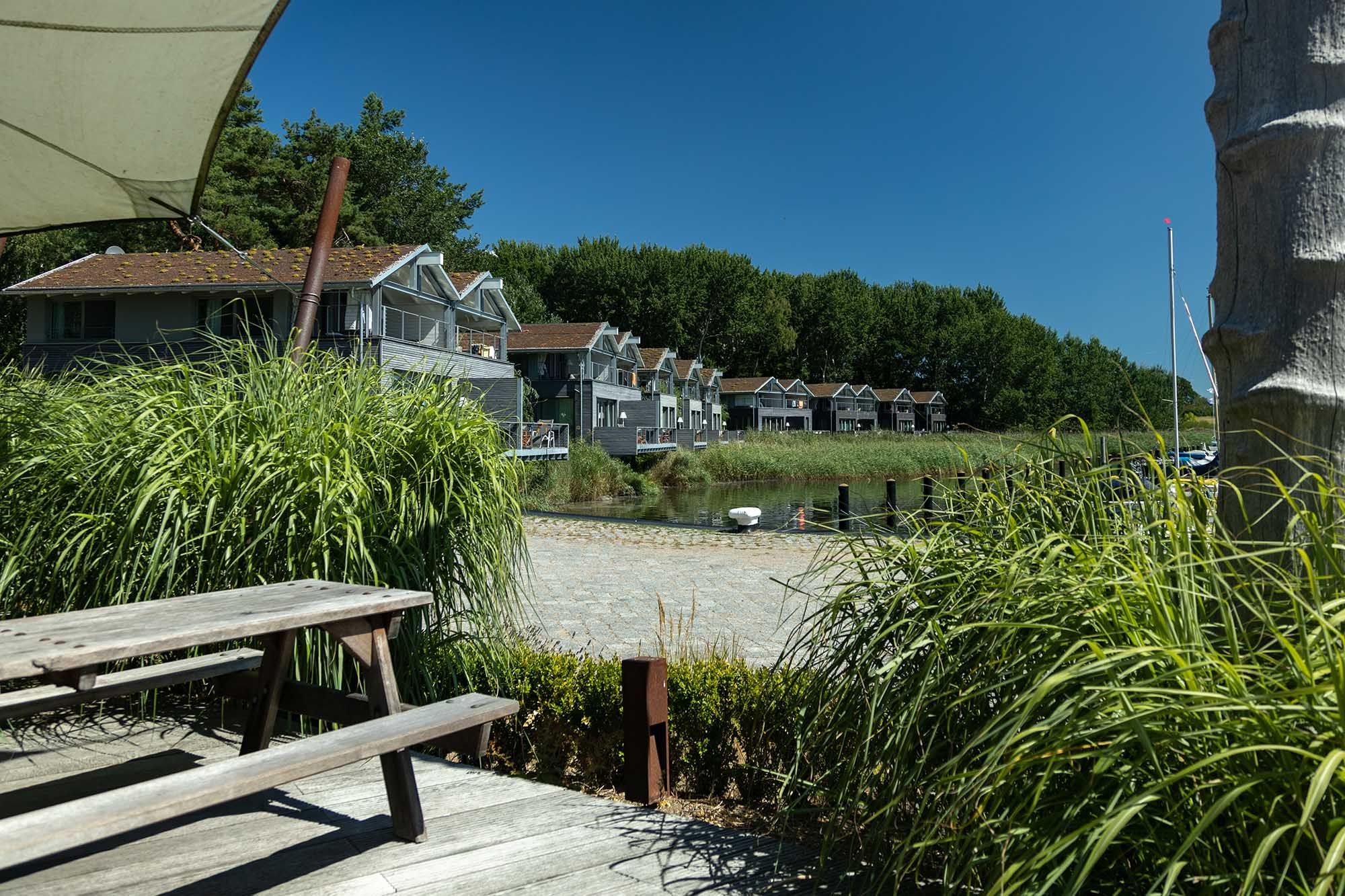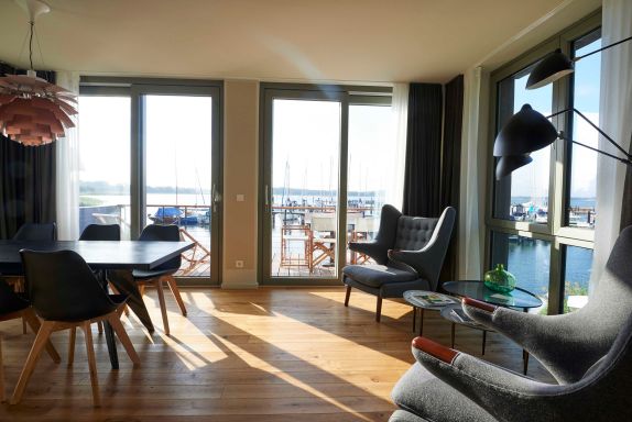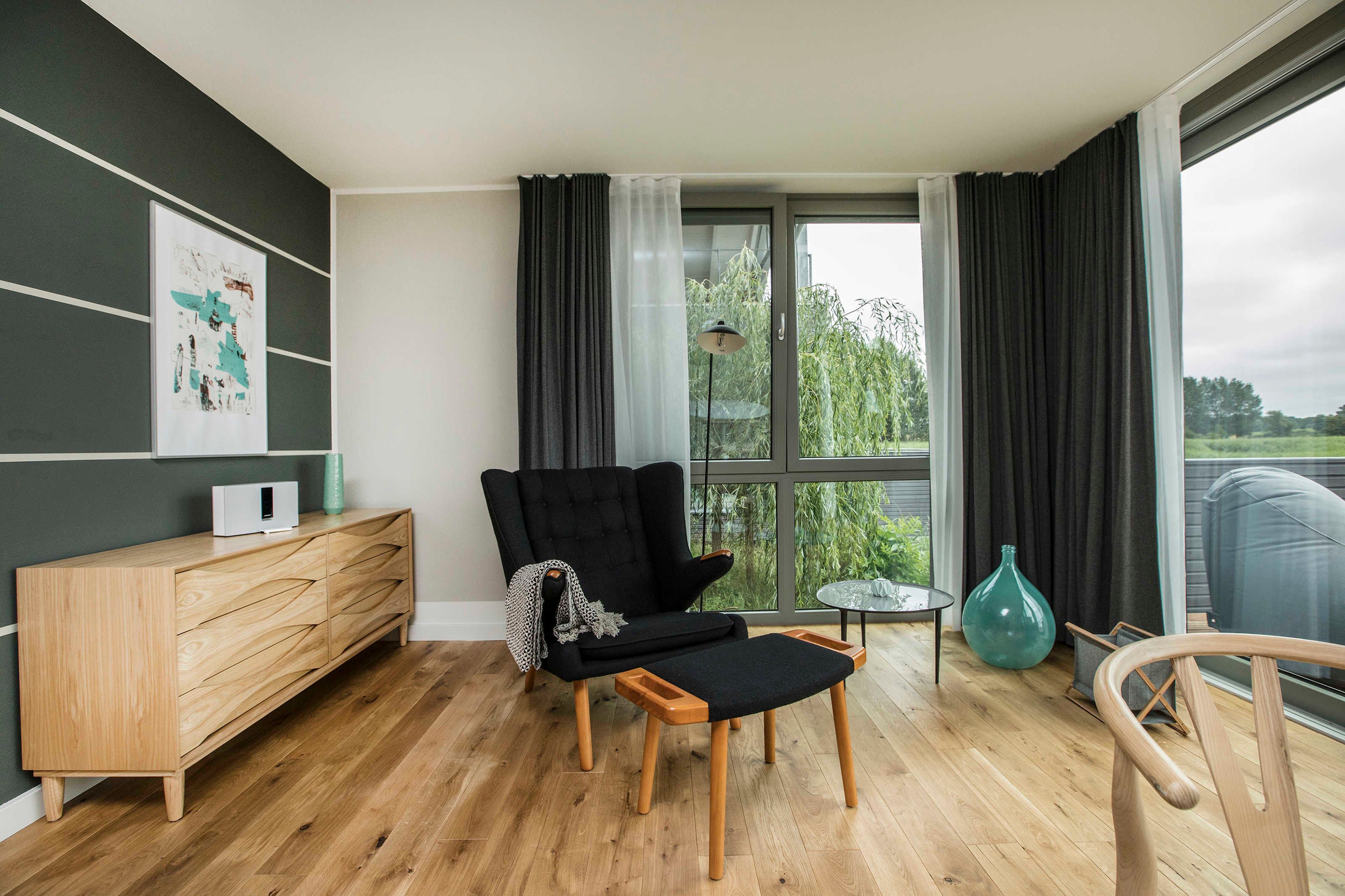 Unsere Uferhäuser bieten höchsten Komfort und traumhafte Ausblicke. Natürliche Materialien wie Holz und Naturstein kombiniert mit Designklassikern des 20. Jahrhunderts bestimmen das Ambiente. Wir haben uns wirklich viel Mühe gegeben mit der Gestaltung und sind begeistert vom Ergebnis.