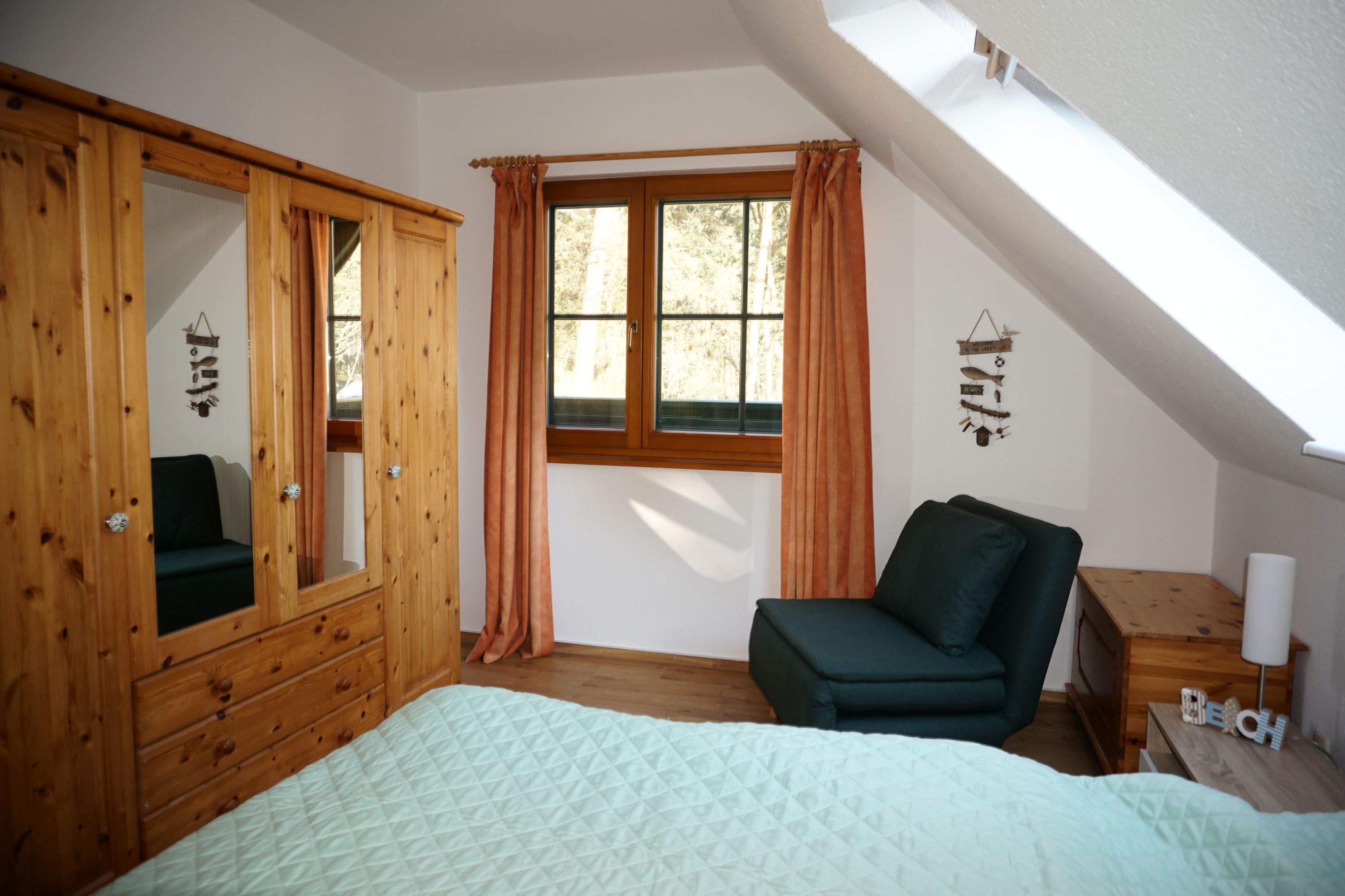 Über einen separaten Aufgang erreichen Sie im 1. Obergeschoss die gemütliche ca. 45 qm große Nichtraucher-Wohnung. Die Wohnräume (kombiniertes Wohn-/Ess-Zimmer mit Küchenzeile, Schlafzimmer, Duschbad und Flur) sind liebevoll eingerichtet.