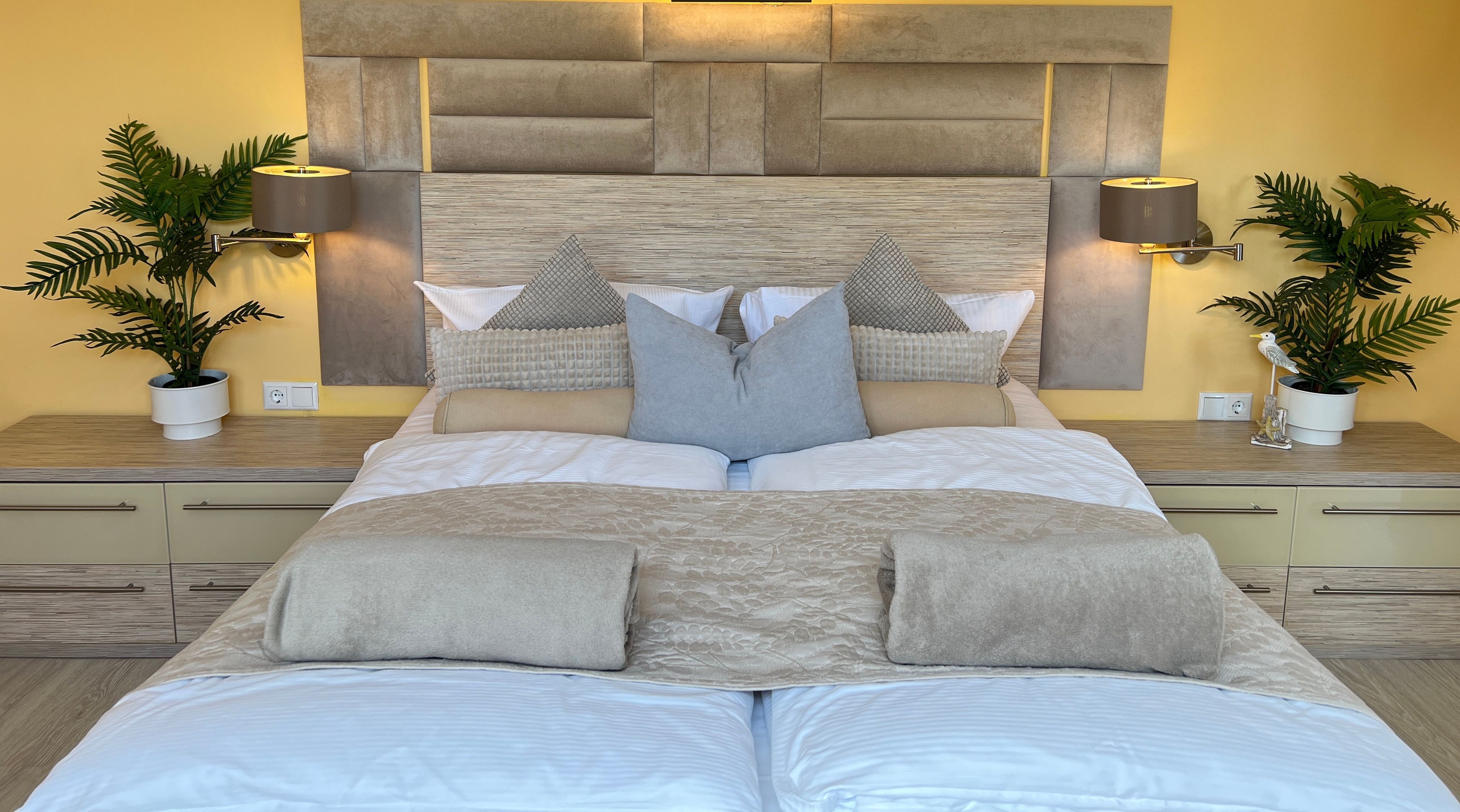 Die nur 80 Meter vom Strand entfernte Erdgeschosswohnung hat einen separaten Eingang. Sie ist besonders familienfreundlich und für Rollstuhlfahrer geeignet durch einen stufenlosen Zugang. Selbst die gesamte Ferienwohnung ist barrierefrei. Allergiker fühlen sich so wohl wie unsere Nichtraucher. In den Schlafzimmern befinden sich zwei extrahohe, bequeme Betten (160cm und 140cm). Selbstverständlich erwartet Sie eine komfortable Vollausstattung. Ansprechende Laminat- und Steinfliesenböden sorgen für Behaglichkeit und eine warme, heimische Atmosphäre. Die gesamte Ferienwohnung wird von einer Fußbodenheizung erwärmt. Ihnen steht ein LED-Fernseher, freier Internetzugang sowie eine moderne, grundausgestattete Einbauküche zur Verfügung. Ein Parkplatz direkt vor Ihrem Feriendomizil sorgt für kürzeste Wege. Weiße, kräftige Baumwollbettwäsche und weiche Handtücher werden Ihnen schmeicheln. Geschirrtücher sowie Duschvorleger sind ebenfalls vorhanden. Hochstühle und Kinderreisebetten können nach Rücksprache zur kostenlosen Nutzung bereitgestellt werden. Toilettenhalterung und behindertengerechte Duschhocker sind für unsere bedürftigen Gäste ebenfalls auf Anfrage inklusive. Jungen Familien und gehandicapten Personen werden sämtliche, barrierefreien Zugänge zum Strand, zur Seebrücke und der Ortschaft Ahlbeck sehr entgegenkommen.
