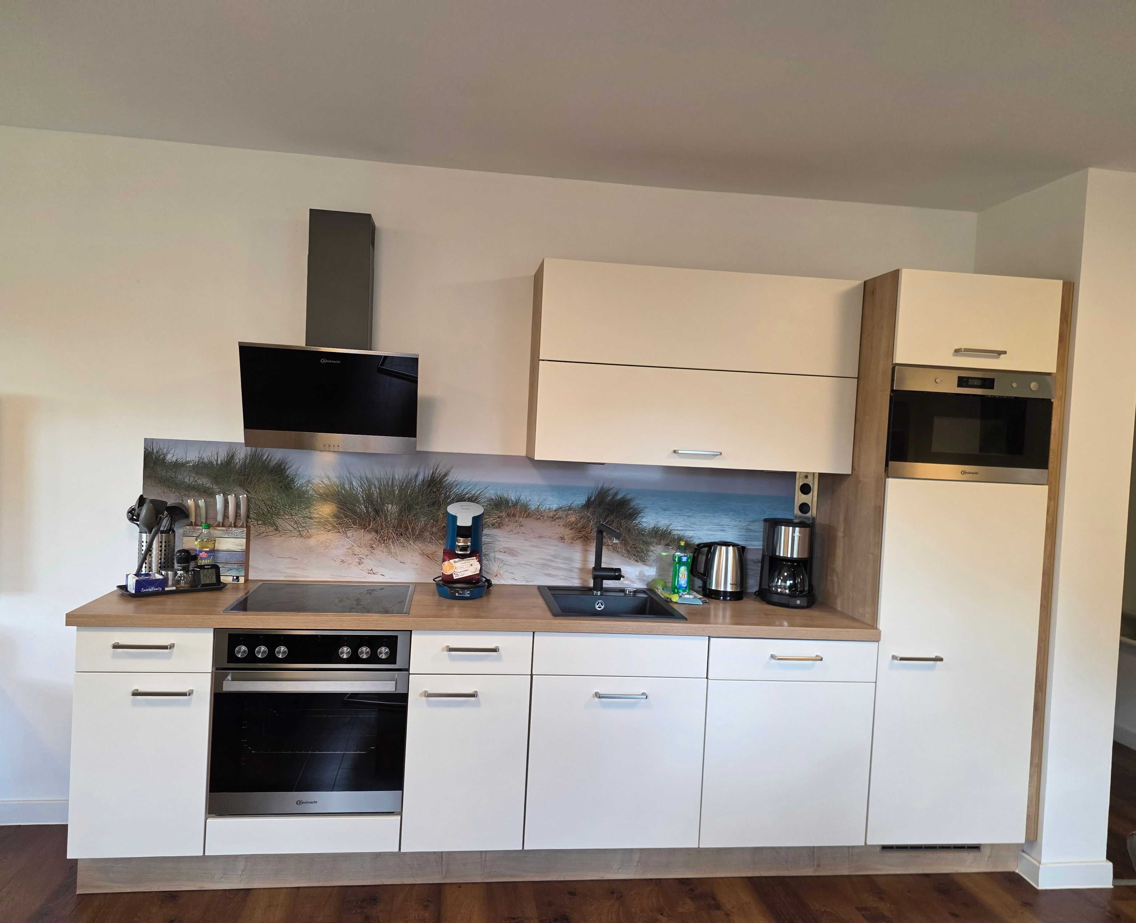 Die Ferienwohnung Vellamo bietet modernsten Ansprüchen Raum. Sie hat einen großzügigen Wohn-Essbereich mit voll ausgestatteter Einbauküche. Unseren Gästen stehen 2 Schlafzimmer zur Verfügung. Im 1. SZ steht ein Doppelbett mit einer Liegefläche von 180 x200 cm. Im 2. SZ finden Sie ein Familienbett mit einer Breite von 270 cm , welches 3 Personen ausreichend Platz bietet. Das Bad ist ausgestattet mit Dusche, Badewanne und einer Waschmaschine für die Wäsche zwischendurch. Kostenloses WLAN und Netflix Zugang steht Ihnen zur Verfügung. Zur Wohnung gehört ein extrabreiter Stellplatz mit Ladestation. Unsere Gäste laden ihr Elektroauto hier kostenfrei.
