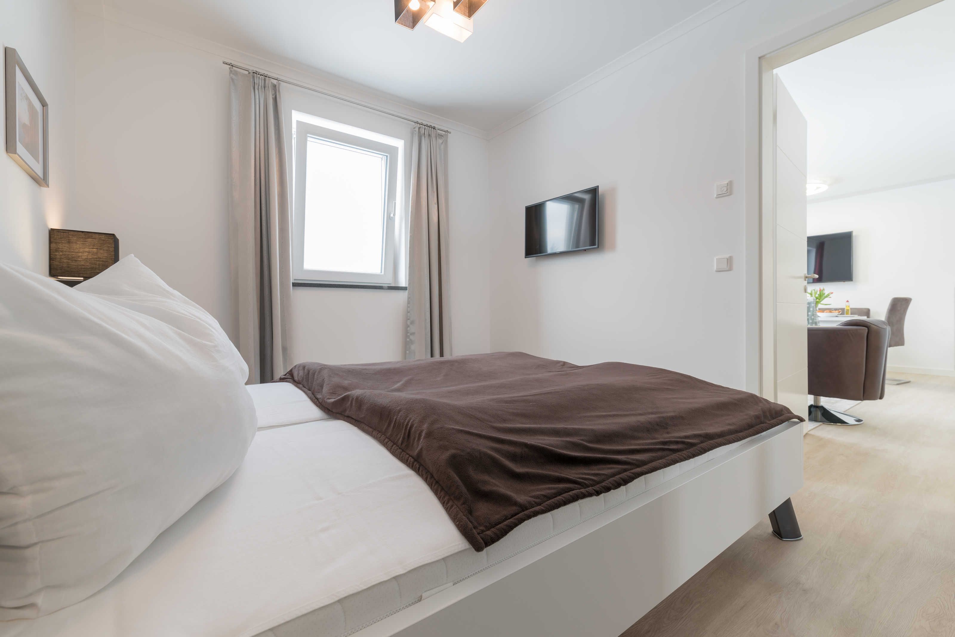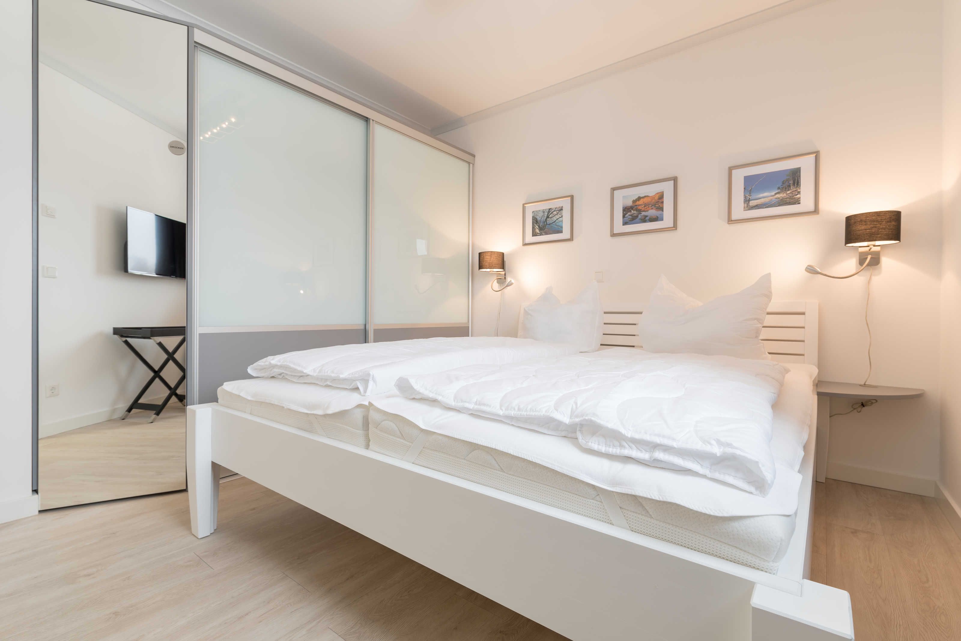 In den beiden Schlafzimmern finden Sie jeweils ein komfortables Doppelbett (180 cm x 200 cm) sowie einen geräumigen Kleiderschrank. Die Fenster der Schlafräume sind mit Fliegengittern ausgestattet, so dass Sie nachts vor kleinen, unerwünschten Besuchern geschützt sind. Auch hier sind Flat Screen-TVs vorhanden.