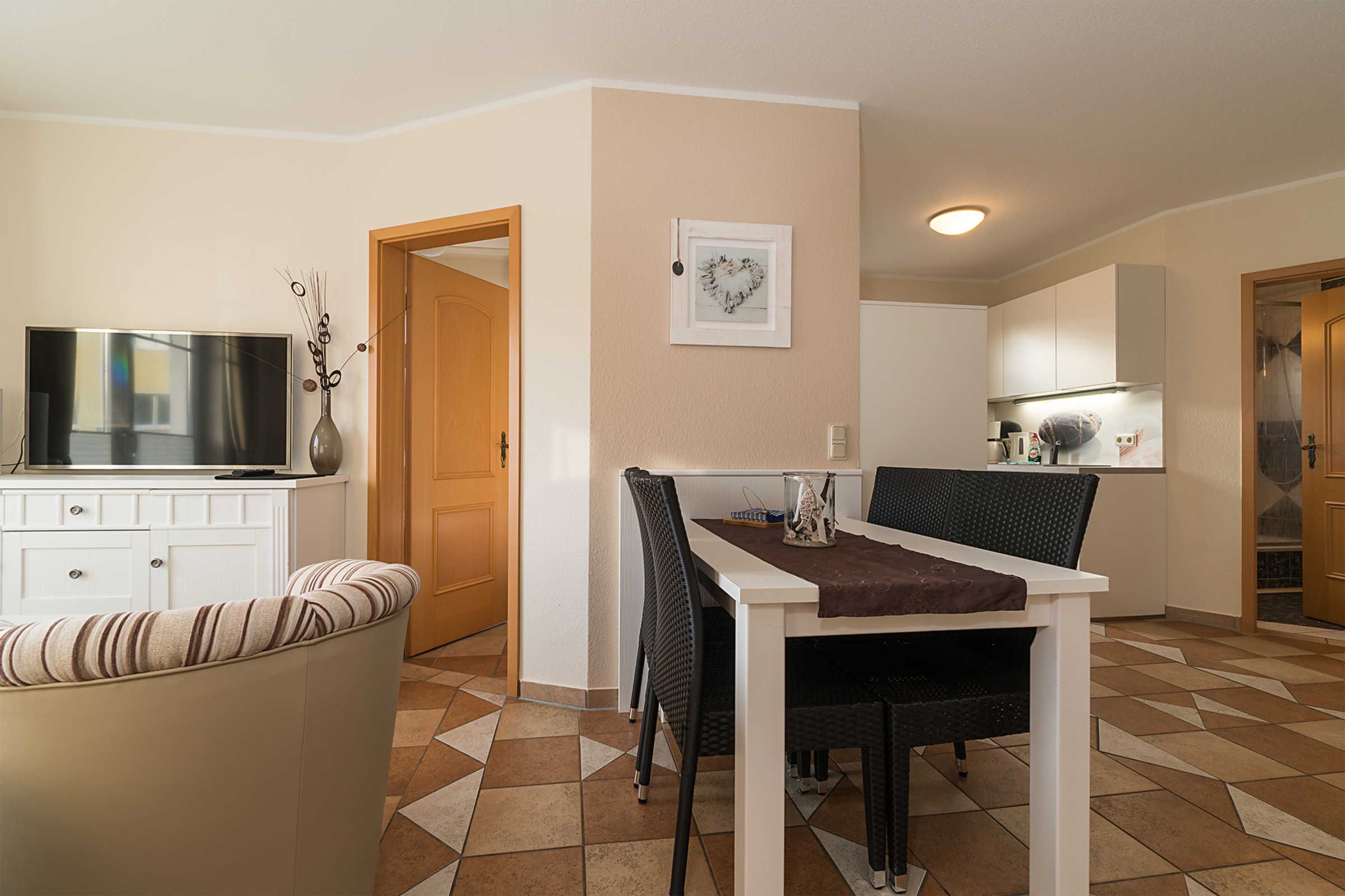 Die Ferienwohnung ist geschmackvoll eingerichtet und gehört zu einem Gästehaus mit insgesamt 4 Ferienwohnungen. Unsere Villa wurde 2013 komplett renoviert und neu möbliert. Im Keller stehen eine Waschmaschine und ein Trockner zur Verfügung. Auf dem Grundstück kann eine Sitz- und Grillecke genutzt werden (Gemeinschaftsnutzung) und unsere kleinen Gäste können sich in und an unserem Buddelschiff austoben. Mitgebrachte Fahrräder können im abschließbaren Fahrradschuppen sicher untergestellt werden.