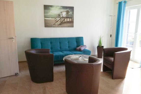 Die 82 m² Doppelhaushälfte befindet sich am Ortsrand des Seebades Altefähr auf der Ostseeinsel Rügen. In nur 350 m Entfernung finden Sie den Strand und den Hafen mit Restaurants. Das Wohnzimmer mit Terrasseszugang ist mit einer Couch, Sesseln, TV und einen Essbereich für 6 Personen ausgestattet. Im Wohnbereich befindet sich außerdem ein vollausgestatteter Küchenbereich mit Kühl- und Gefrierschrank, Backofen, Herd mit Ceranfeld, Mikrowelle, Kaffeemaschine, Wasserkocher und einer Geschirrspülmaschine. In der Doppelhaushälfte gibt es drei separate Schlafzimmer. Eines ist mit einem Doppelbett (180x200; getrennte Matratzen), einer Sitzgelegenheit, TV, Kleiderschrank, Nachtschränken und einem Herrendiener ausgestattet. Die beiden anderen Schlafzimmer verfügen jeweils über zwei zusammenstellbare Einzelbetten (100x200; 90x200), Kleiderschrank, Nachtschränke und Herrendiener. Das Badezimmer im Erdgeschoss ist mit einer 1,20 m großen Dusche, Föhn und Waschmaschine ausgestattet. Im Obergeschoss befindet sich ein zweites Badezimmer, welches ebenfalls über eine Dusche verfügt. Auf der angeschlossenen Terrasse mit Grillmöglichkeit kann der Abend ruhig und entspannt ausklingen.