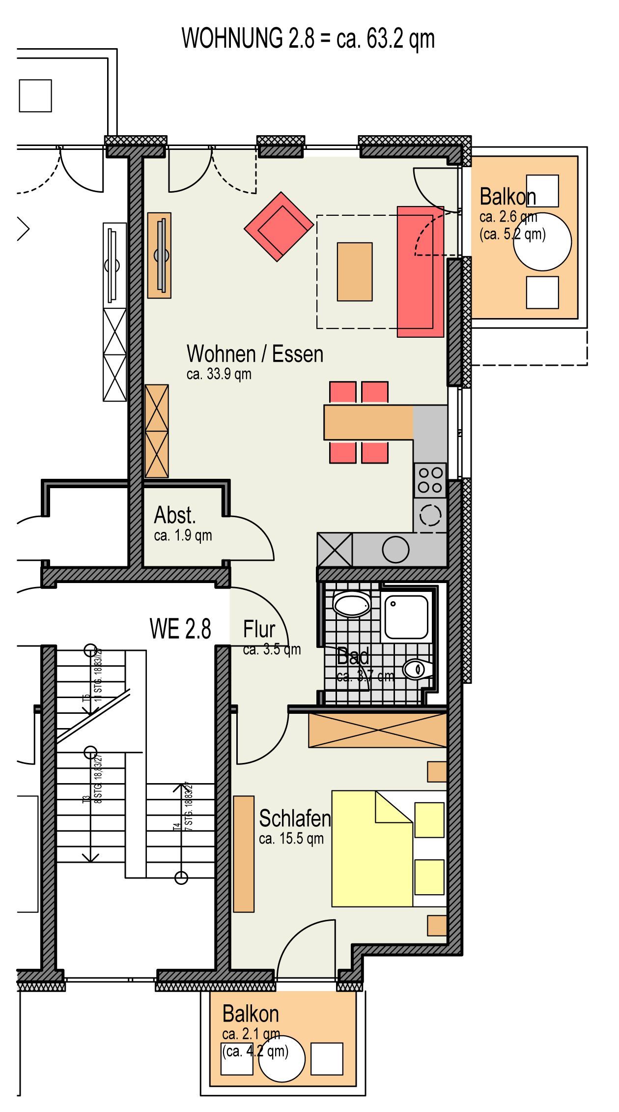 2 Balkone mit Gartenmöbeln