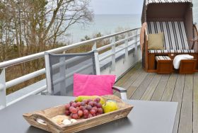 Die Ferienwohnung Strandkorb im Strandhaus Juliusruh liegt direkt am schönen Sandstrand vom Seebad Juliusruh. Es sind nur wenige Schritte bis zur Strandpromenade und der Ostsee. Von der fast 40 m² großen Dachterrasse aus, können Sie schon beim Frühstück den wundervollen Blick auf die Ostsee genießen.