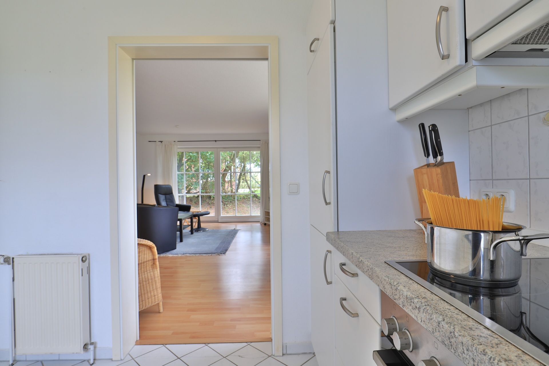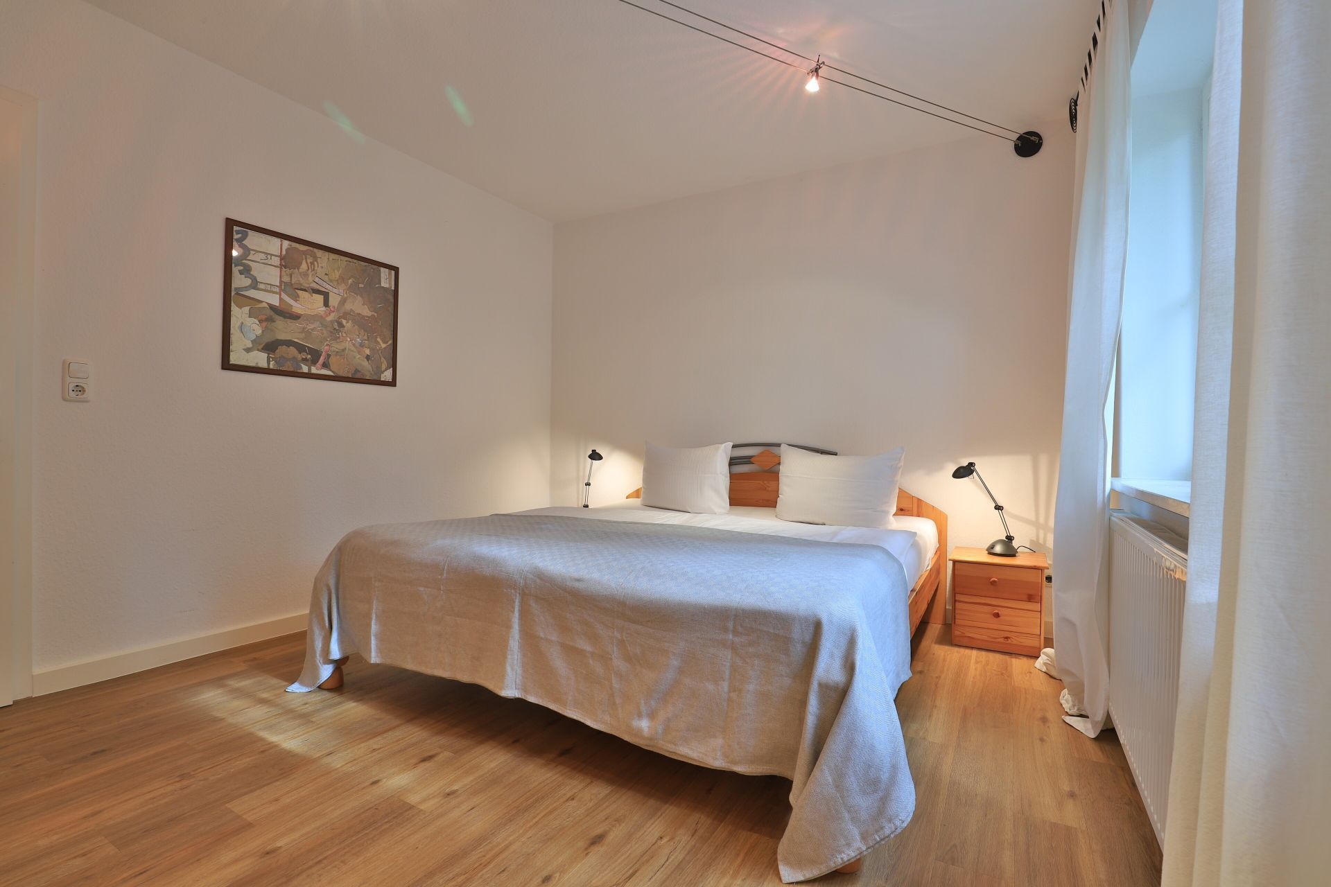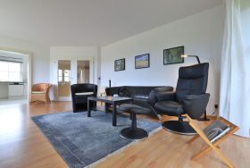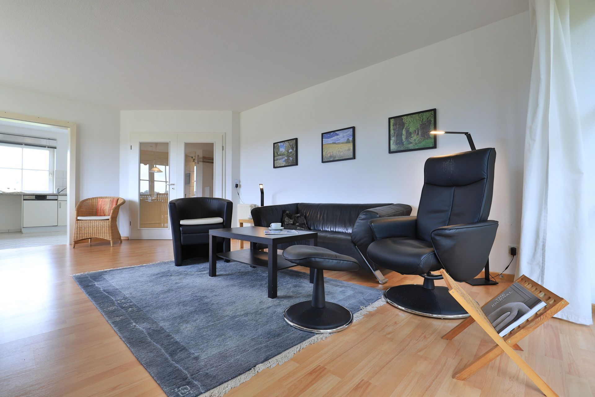 Das gut ausgestattete Erdgeschosswohnung bietet eine Wohnfläche von ca. 74qm und kann mit bis zu 4 Personen belegt werden. Durch bodentiefe Fenstertüren gleitet angenehmes Tageslicht in den Wohn und Essbereich, der seine Gäste mit einem Sofa, Lehnsessel und Esstisch empfängt. Auch ein Fernseher sowie ein Radio sind vorhanden. Den Internetanschluss nutzen Sie gebührenfrei. Eine separate Küche ermöglicht die Eigenversorgung. Herd, Backofen, Dunstabzug, Kühlschrank mit integr. Gefrierfach, Kaffeemaschine, Toaster, Geschirrspüler usw. sind vorhanden. Eine saisonal möblierte Terrasse in Süd-West Ausrichtung lädt zum Entspannen ein. Erholsame Nächte ermöglichen zwei separate Schlafzimmer, jeweils mit Doppelbett und Kleiderschrank.
