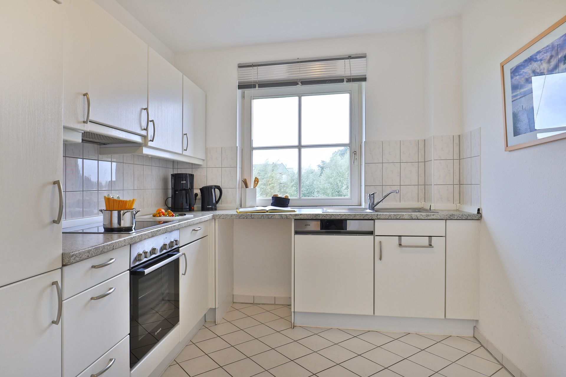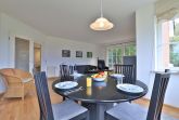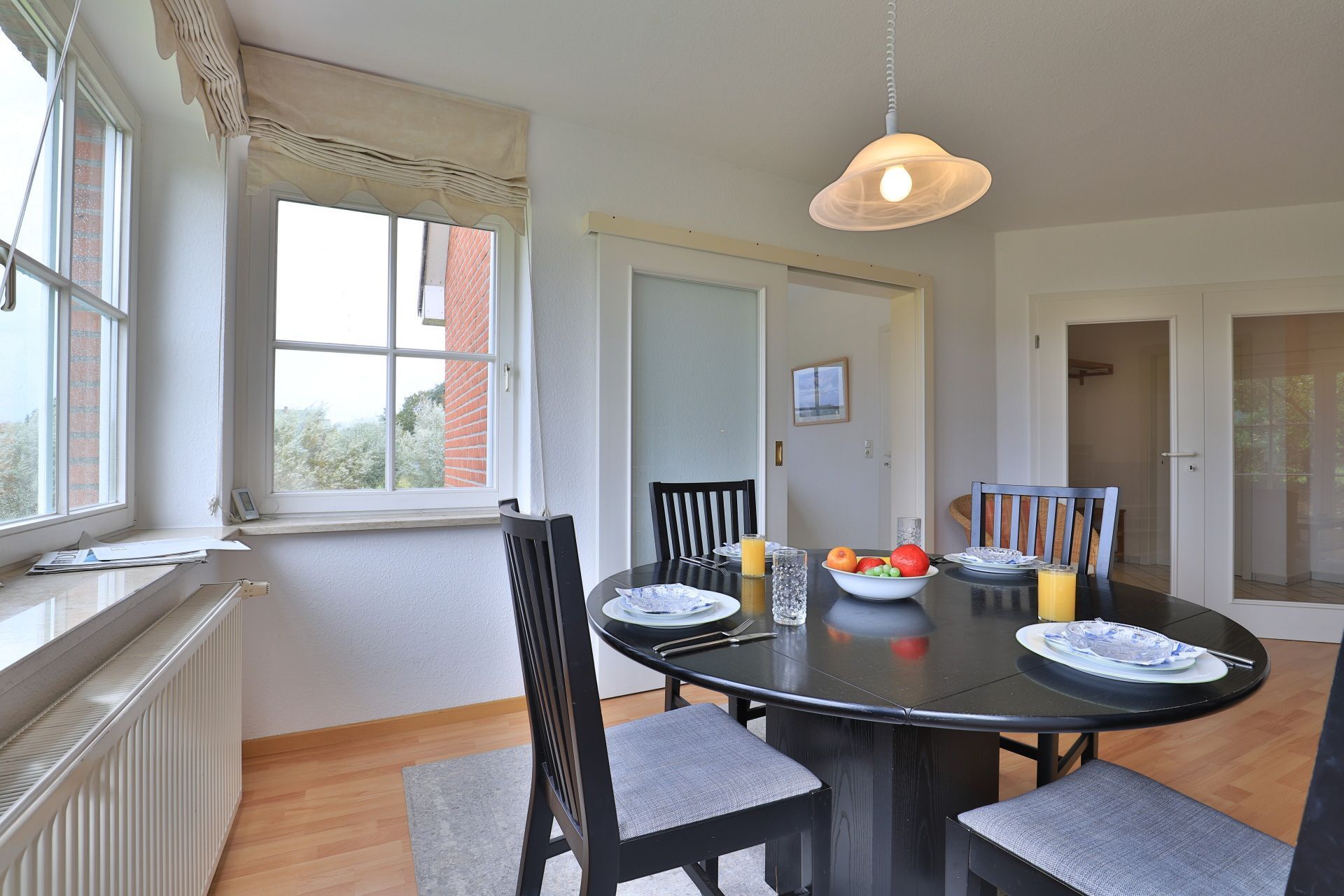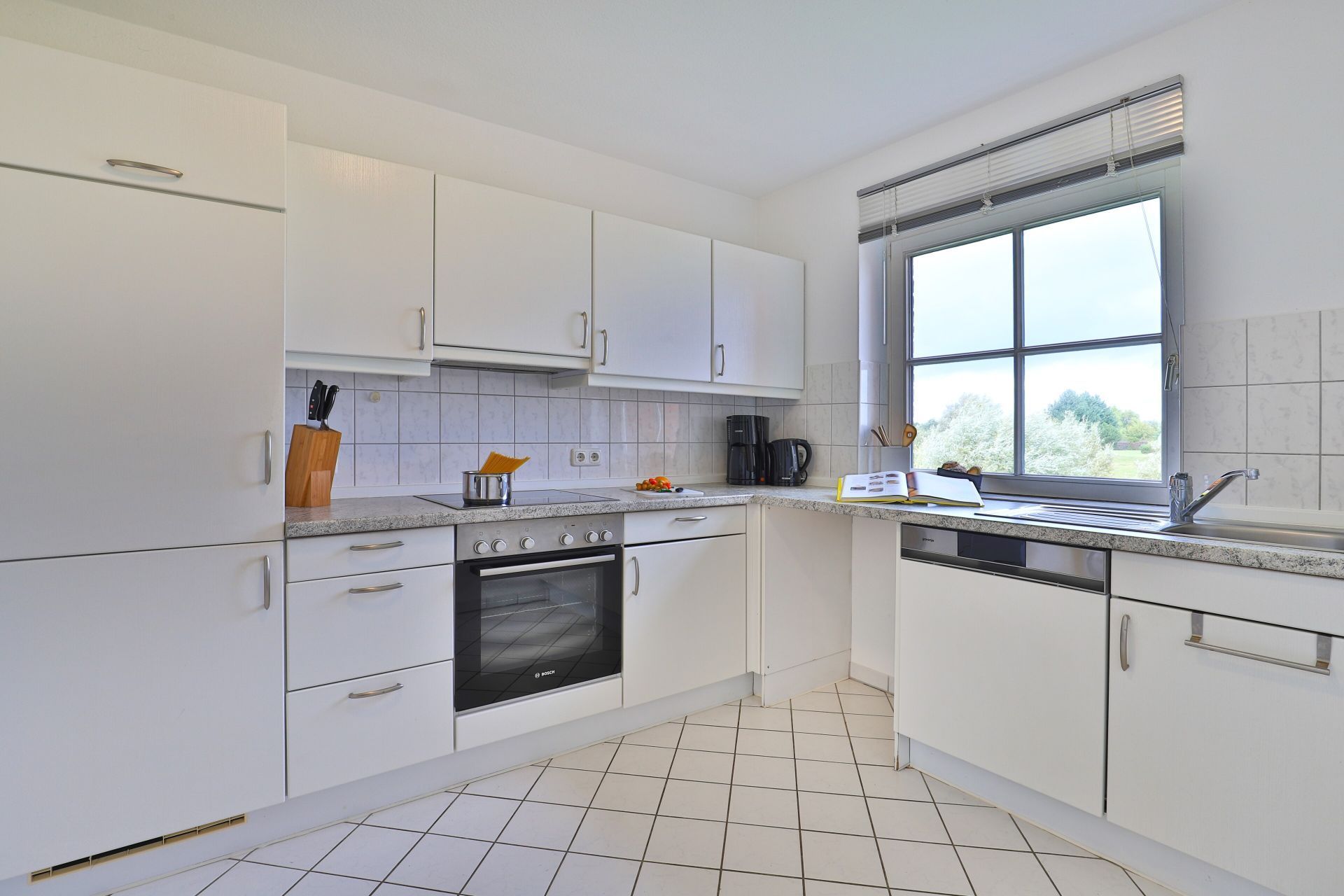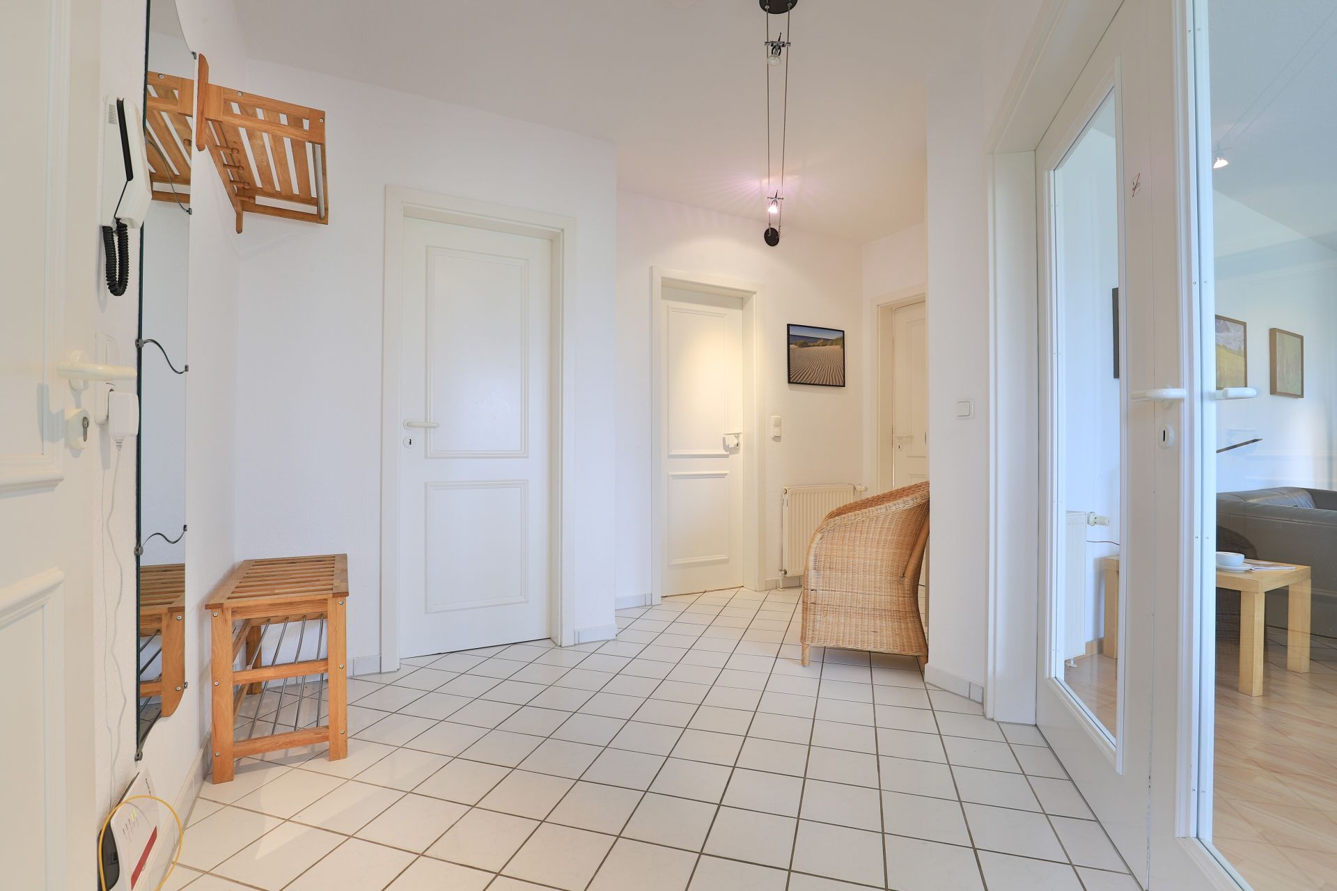 Das gut ausgestattete Erdgeschosswohnung bietet eine Wohnfläche von ca. 74qm und kann mit bis zu 4 Personen belegt werden. Durch bodentiefe Fenstertüren gleitet angenehmes Tageslicht in den Wohn und Essbereich, der seine Gäste mit einem Sofa, Lehnsessel und Esstisch empfängt. Auch ein Fernseher sowie ein Radio sind vorhanden. Den Internetanschluss nutzen Sie gebührenfrei. Eine separate Küche ermöglicht die Eigenversorgung. Herd, Backofen, Dunstabzug, Kühlschrank mit integr. Gefrierfach, Kaffeemaschine, Toaster, Geschirrspüler usw. sind vorhanden. Eine saisonal möblierte Terrasse in Süd-West Ausrichtung lädt zum Entspannen ein. Erholsame Nächte ermöglichen zwei separate Schlafzimmer, jeweils mit Doppelbett und Kleiderschrank.
