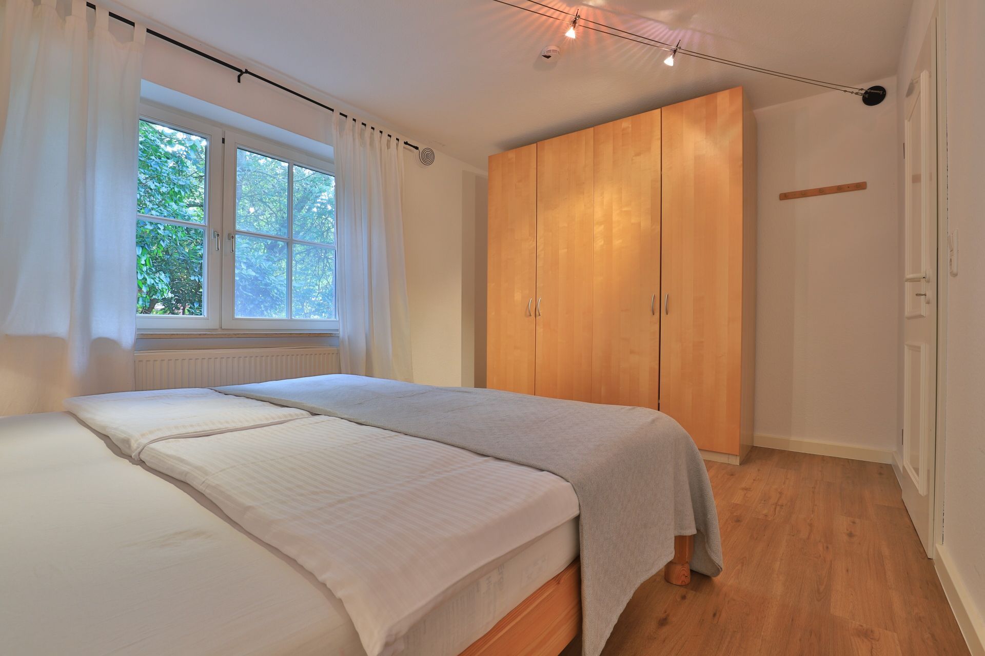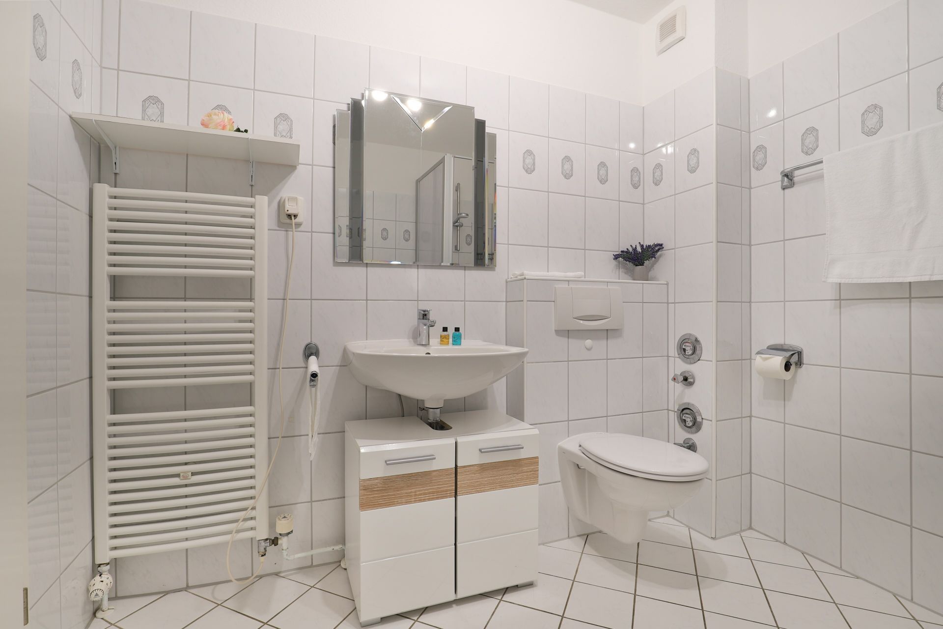 Zugehörig ist ein geräumiges Bad mit Wanne, Dusche, Handtuchheizung, Waschtisch und WC. Eine Waschmaschine kann ebenfalls genutzt werden.