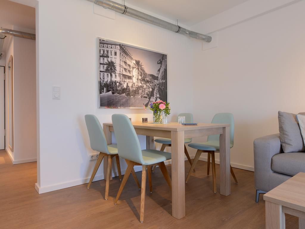 Esstisch und einem Flachbild- TV zum Verweilen ein. Die voll ausgestattete, separate Küche verfügt über einen Geschirrspüler, eine Mikrowelle, eine Kaffeemaschine, ein Wasserkocher und vieles mehr. Ein großes Doppelbett im Schlafzimmer sorgt für die nötige Erholung. Das Badezimmer ist sehr elegant eingerichtet. Bei Anreise sind 2 Betten bezogen und Handtücher liegen für Sie bereit. WLAN steht Ihnen kostenfrei zur Verfügung. In unmittelbarer Nähe sind öffentliche Parkplätze vorhanden