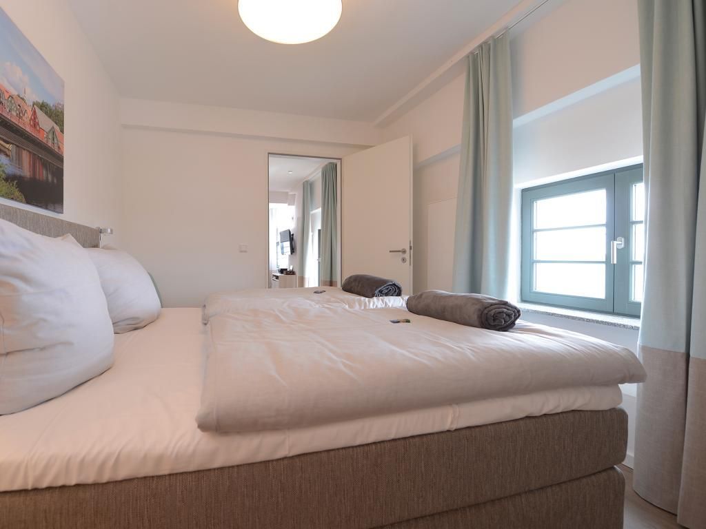 Auf 62 m² können hier bis zu 4 Personen einen traumhaften Urlaub verbringen. Mit dem Lift erreichen Sie das wunderschöne Appartement in der 6. Etage ganz einfach. Der exklusiv eingerichtete Wohn- und Essbereich mit einer Essecke und einem TV-Gerät lädt zum Verweilen ein. Die geschickt integrierte voll ausgestattete Küchenzeile sorgt für alle Annehmlichkeiten. Zwei separate Schlafzimmer, mit jeweils einem Doppelbett sorgen für erholsamen Schlaf. Des Weiteren verfügt dieses Appartement über ein modernes Duschbad sowie ein Gäste WC. Bei Anreise sind 2 Betten bezogen und Handtücher liegen für Sie bereit. WLAN steht Ihnen kostenfrei zur Verfügung. In unmittelbarer Nähe sind öffentliche Parkplätze vorhanden.
