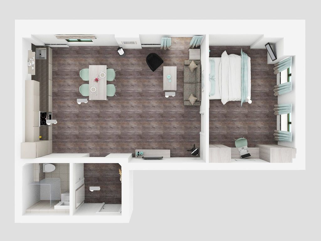 Das 54 m² große 2- Zimmer- Appartement befindet sich in der 6. Etage, welche leicht durch den Lift zu erreichen ist. Unterteilt ist dieses exklusive Appartement in einen hellen und geräumigen