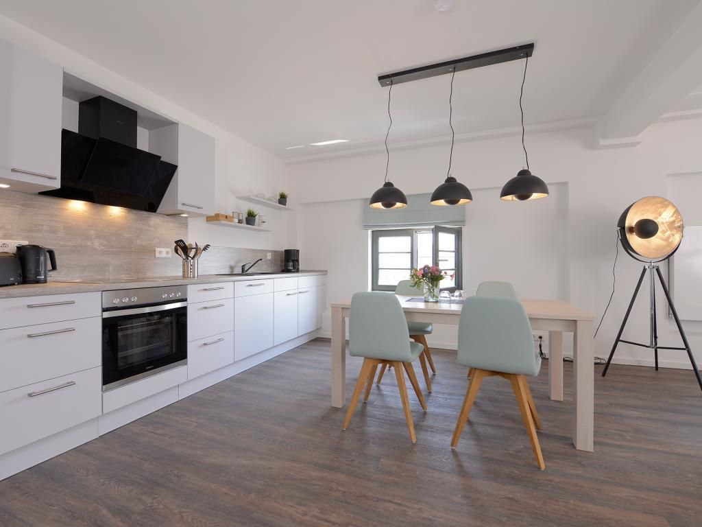 Wohn- und Essbereich mit integrierter voll ausgestatteter Küchenzeile sowie einem