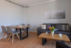 Das exklusive 2-Zimmer-Appartements bietet mit seinen 52m² Platz für 2 Personen. Über den Lift lässt sich das Appartement in der 5. Etage ganz einfach erreichen. Der Wohn-/ Essbereich ist sehr geschmackvoll mit Sofa, einer Essecke und einem TV-Gerät eingerichtet. Von hier haben Sie Zugang zum Balkon und genießen einen atemberaubenden Ausblick. Die voll ausgestattete Küche lässt keine Wünsche offen. Das separate Schlafzimmer ist komfortabel mit einem Doppelbett und einem weiteren TV-Gerät eingerichtet. Des Weiteren verfügt es über ein sehr modernes Duschbad. In unmittelbarer Nähe sind öffentliche Parkplätze vorhanden.