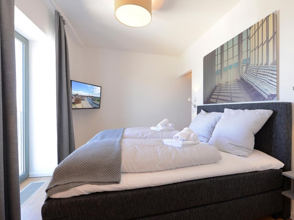Appartementhaus mit 48 Appartements. Das exklusive 2-Zimmer-Appartements bietet mit seinen 52m² Platz für 2 Personen. Über den Lift lässt sich das Appartement in der 5. Etage ganz einfach erreichen. Der Wohn-/ Essbereich ist sehr geschmackvoll mit Sofa, einer Essecke und einem TV-Gerät eingerichtet. Von hier haben Sie Zugang zum Balkon und genießen einen atemberaubenden Ausblick. Die voll ausgestattete Küche lässt keine Wünsche offen. Das separate Schlafzimmer ist komfortabel mit einem Doppelbett und einem weiteren TV-Gerät eingerichtet. Des Weiteren verfügt es über ein sehr modernes Duschbad. In unmittelbarer Nähe sind öffentliche Parkplätze vorhanden. Bei Anreise sind 2 Betten bezogen und Handtücher liegen für Sie bereit. WLAN steht Ihnen kostenfrei zur Verfügung.