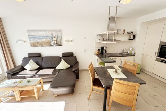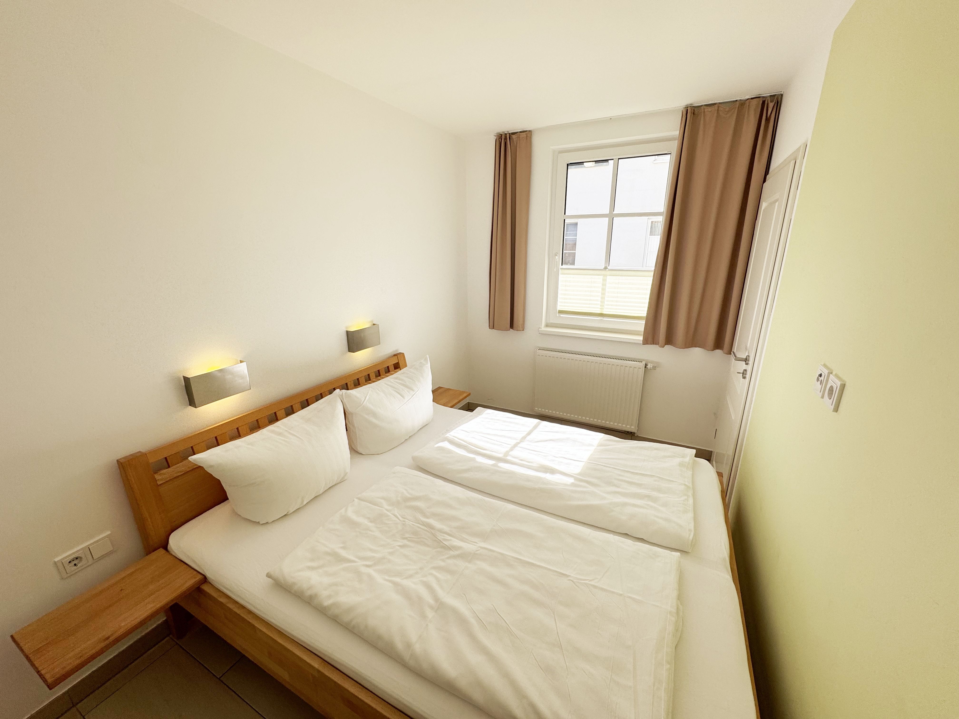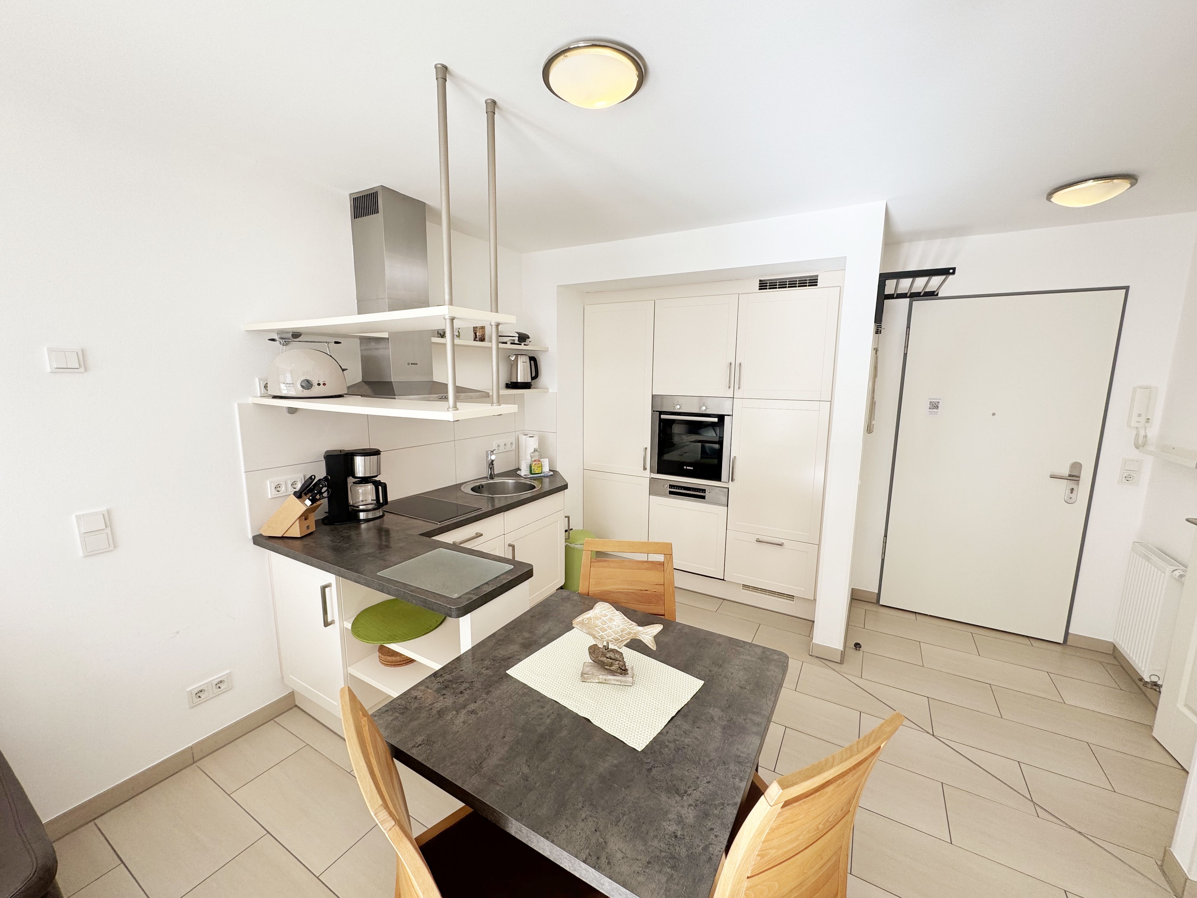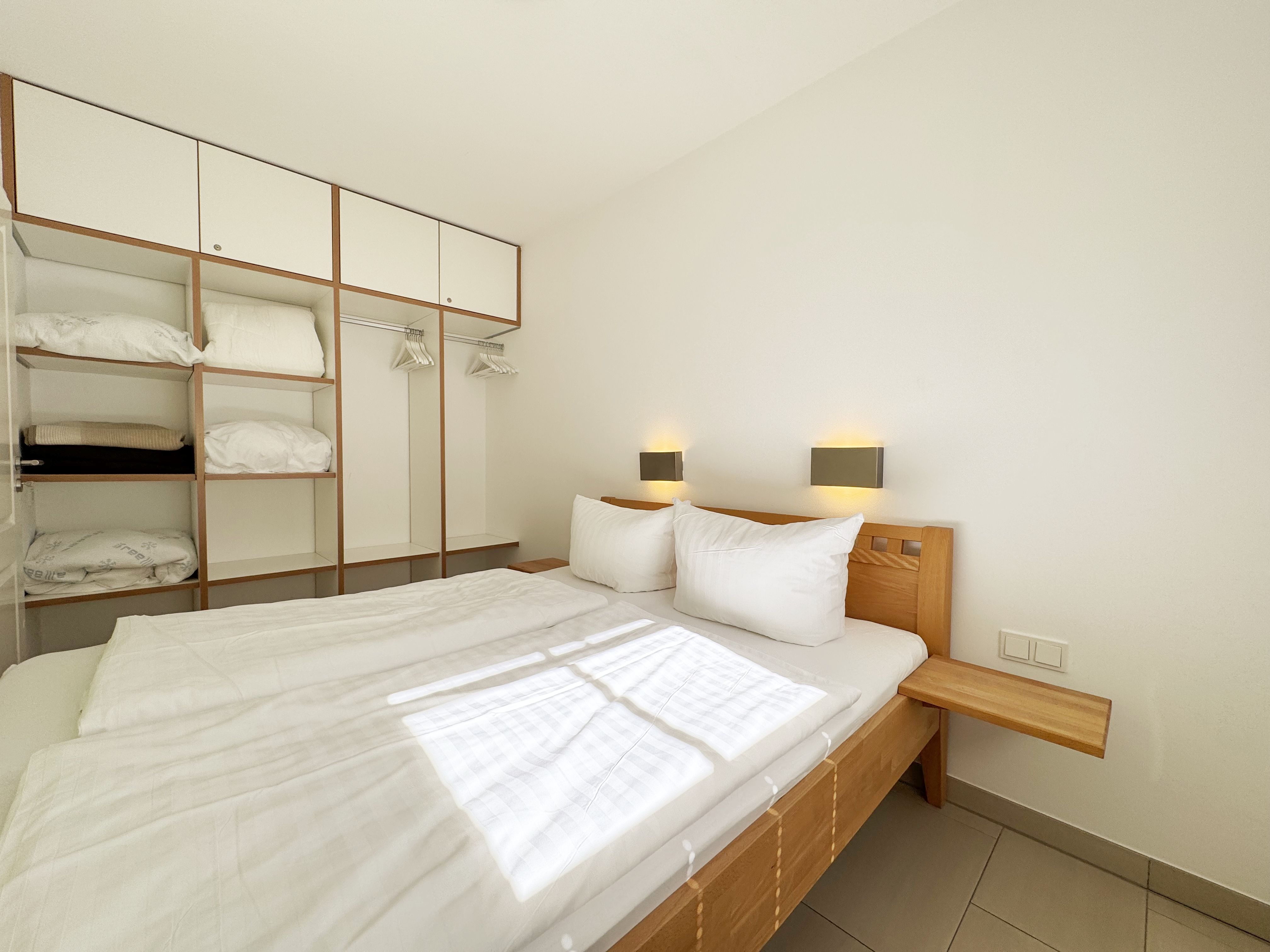 Ihre Nichtraucher-Ferienwohnung ist mit viel Liebe zum Detail ausgestattet und eingerichtet. Sie wohnen in einer ca. 40 m² großen 2-Zimmerwohnung, die ideal für 2 Personen ist (Aufbettungsmöglichkeit im Wohnbereich für eine 3. Person). Die Wohnung A 2.11 befindet sich in der 2. Etage und ist per Fahrstuhl bequem zu erreichen. In der Wohnung finden Sie einen kombinierten Wohn-/Koch- und Essbereich. Die integrierte Küchenzeile lässt mit Backofen, Ceranfeld, Spülmaschine, Kühlschrank mit Gefrierfach, Kaffeemaschine, Wasserkocher, Toaster und anderen praktischen Helfern keine Wünsche offen. Im Wohnbereich sind weiterhin eine Essecke sowie eine gemütliche Couch (1,20 m x 2,00 m) mit Ottomane, Couchtisch, Smart-TV, Blu-Ray-Player und Mini-Stereoanlage vorhanden. Auch auf einen Internetanschluss (WLAN/LAN) müssen Sie nicht verzichten. Dieser ist für Sie inklusive. Der Balkon ist vom Wohn-/Essbereich begehbar und komplett möbliert. Von hier aus haben Sie einen Blick in Richtung Inselparadies. Das Schlafzimmer ist mit einem Doppelbett (1,60 m x 2,00 m) mit verstellbaren Lattenrosten (Kopfteil), Nachttischkonsolen sowie einem offenen Kleiderschrank ausgestattet. Der Wohn- und Schlafraum kann abgedunkelt werden. Das Bad verfügt über eine ebenerdige Dusche, Waschbecken, Fön, WC und Handtuchheizkörper. Ein eigener PKW-Stellplatz Nr. 31 (Einfahrtshöhe 2,00m) befindet sich in der Tiefgarage des Hauses. Im Keller des Hauses haben Sie die Möglichkeit eine Waschmaschine/Trockner gegen Gebühr zu nutzen. Haustiere sind nicht erlaubt. Mit dem Fahrstuhl des Hauses A gelangen sie in das Untergeschoss der Meeresblickanlage, wo Sie ein großzügiger und heller Wellnessbereich erwartet. Hier können sie in einem Pool kleine Bahnen schwimmen, in 2 Saunen Ihren Kreislauf in Schwung bringen, in einem dazugehörigen Ruheraum Ihren Körper wieder beruhigen, in einer Schneckendusche sowie weiteren Duschen das kühle Nass genießen und auf einer Außenterrasse mit Außendusche die frische Luft einatmen. Die Erstausstattung eines Wäschepaketes (komplette Bettwäsche, 1 Duschhandtuch, 2 kleine Handtücher) können Sie bis 14 Tage vor Anreise gegen einen Aufpreis dazu buchen oder durch eigene ergänzen. Ab 2 gebuchten Paketen erhalten Sie einmalig 1 Geschirrhandtuch und 1 Duschvorleger hinzu.