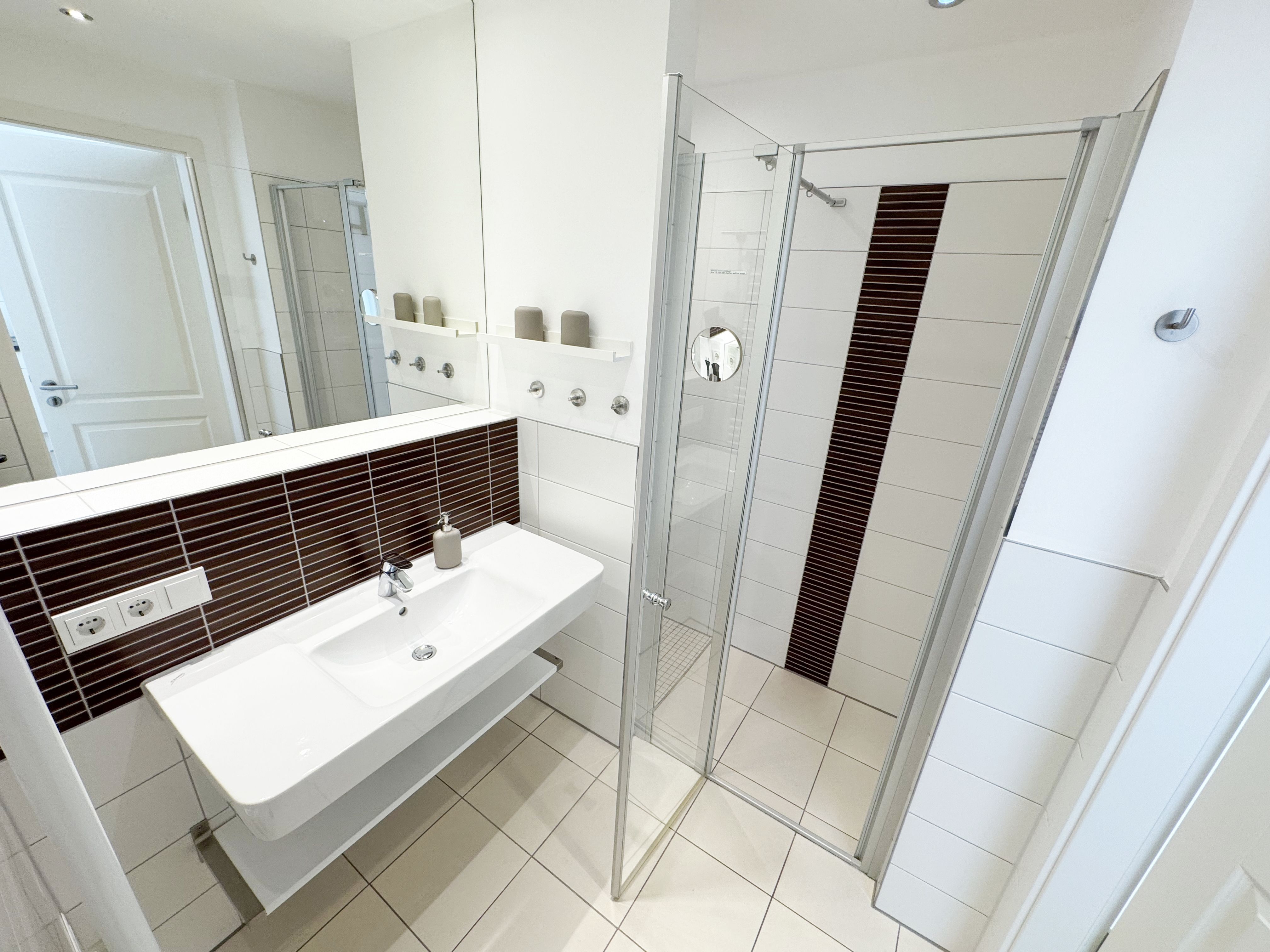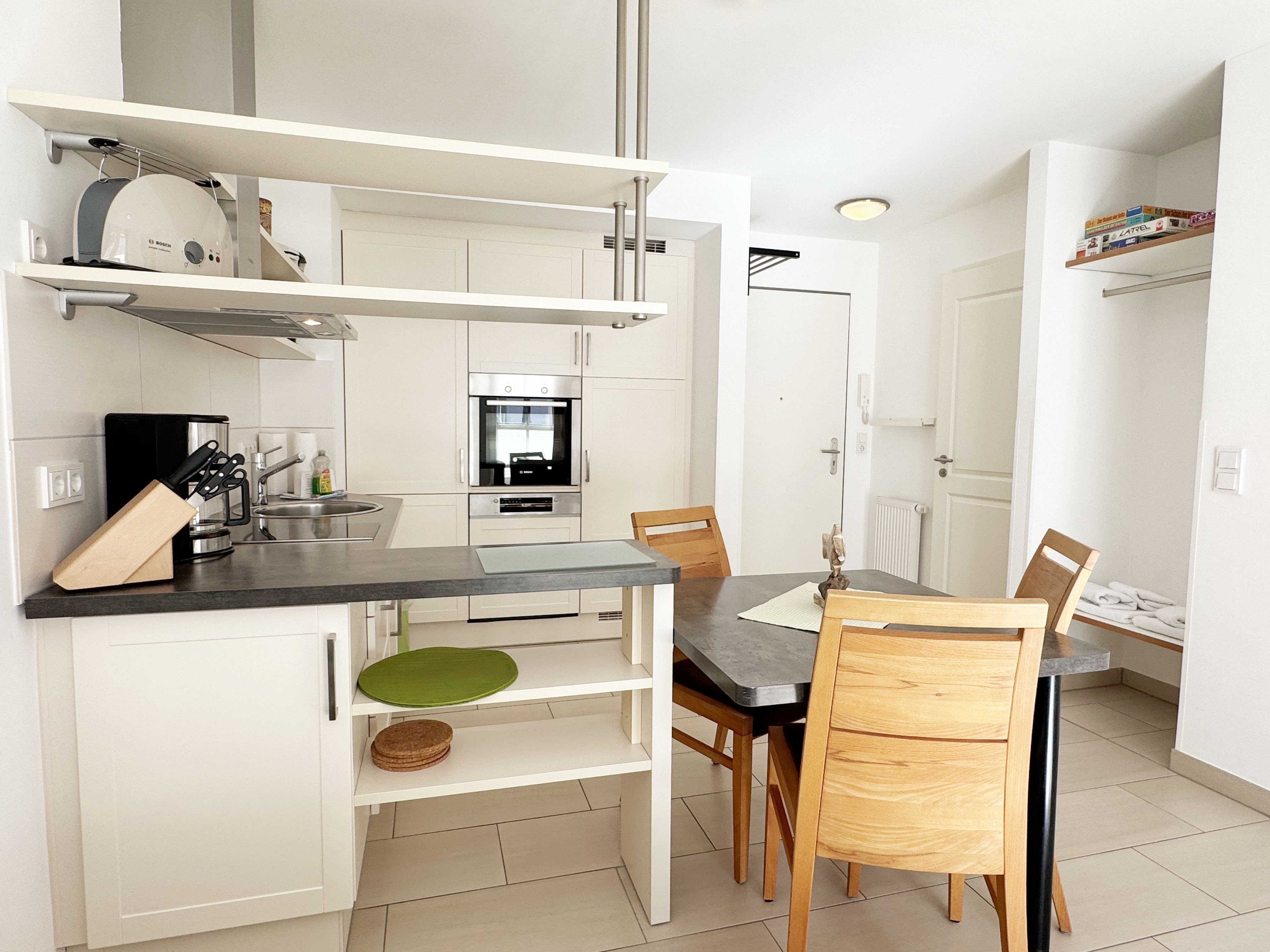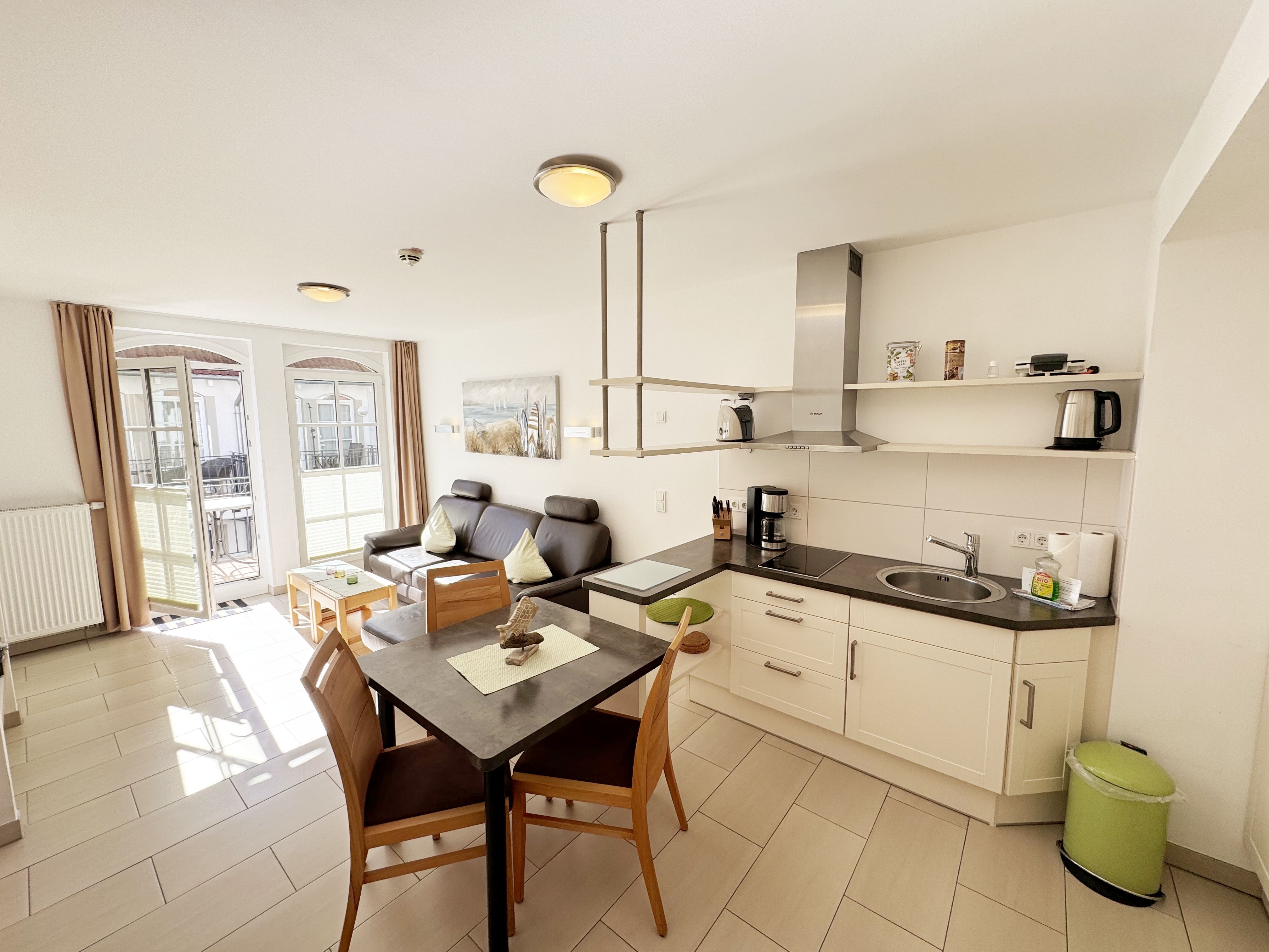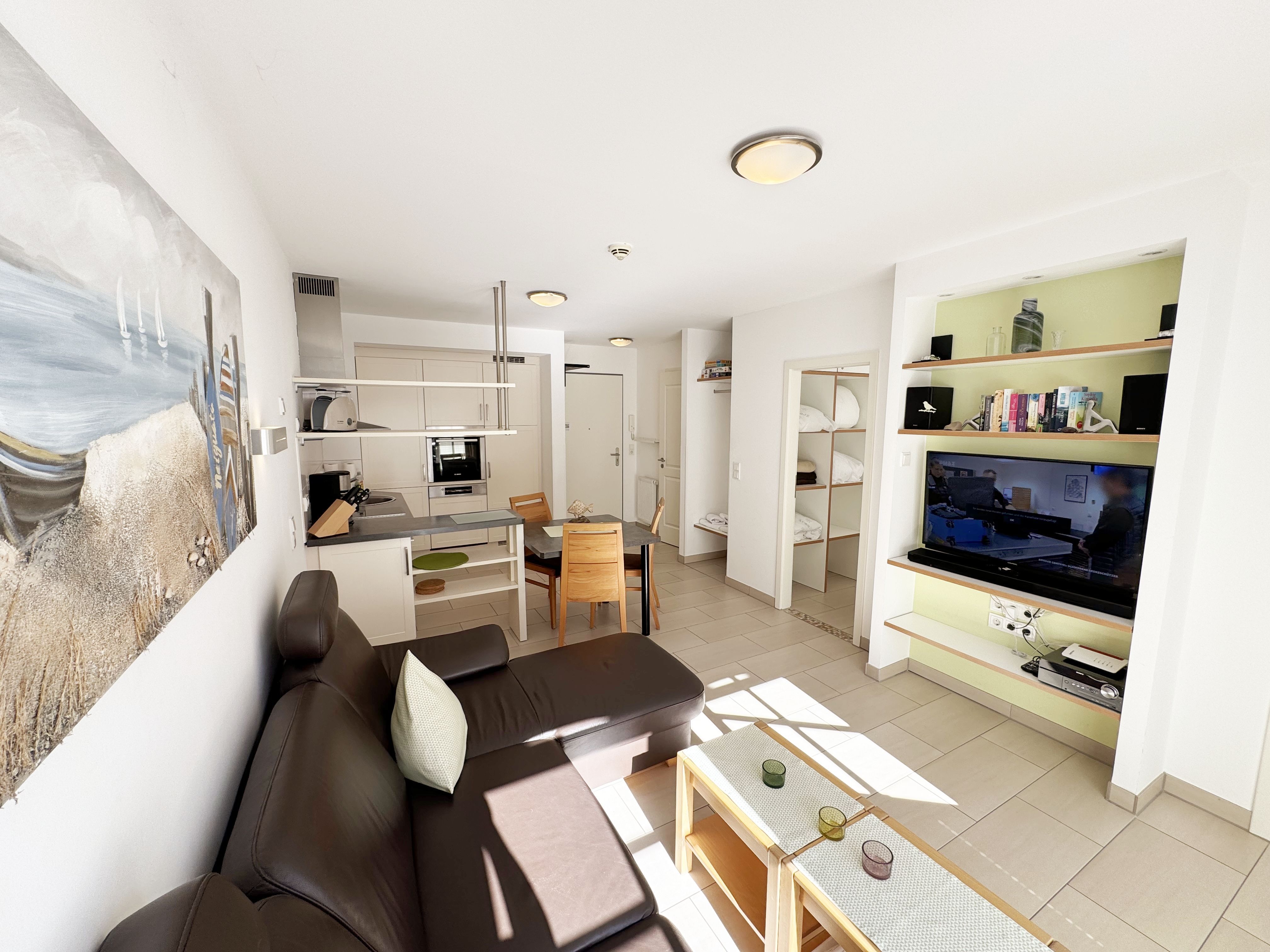 Ihre Nichtraucher-Ferienwohnung ist mit viel Liebe zum Detail ausgestattet und eingerichtet. Sie wohnen in einer ca. 40 m² großen 2-Zimmerwohnung, die ideal für 2 Personen ist (Aufbettungsmöglichkeit im Wohnbereich für eine 3. Person). Die Wohnung A 2.11 befindet sich in der 2. Etage und ist per Fahrstuhl bequem zu erreichen. In der Wohnung finden Sie einen kombinierten Wohn-/Koch- und Essbereich. Die integrierte Küchenzeile lässt mit Backofen, Ceranfeld, Spülmaschine, Kühlschrank mit Gefrierfach, Kaffeemaschine, Wasserkocher, Toaster und anderen praktischen Helfern keine Wünsche offen. Im Wohnbereich sind weiterhin eine Essecke sowie eine gemütliche Couch (1,20 m x 2,00 m) mit Ottomane, Couchtisch, Smart-TV, Blu-Ray-Player und Mini-Stereoanlage vorhanden. Auch auf einen Internetanschluss (WLAN/LAN) müssen Sie nicht verzichten. Dieser ist für Sie inklusive. Der Balkon ist vom Wohn-/Essbereich begehbar und komplett möbliert. Von hier aus haben Sie einen Blick in Richtung Inselparadies. Das Schlafzimmer ist mit einem Doppelbett (1,60 m x 2,00 m) mit verstellbaren Lattenrosten (Kopfteil), Nachttischkonsolen sowie einem offenen Kleiderschrank ausgestattet. Der Wohn- und Schlafraum kann abgedunkelt werden. Das Bad verfügt über eine ebenerdige Dusche, Waschbecken, Fön, WC und Handtuchheizkörper. Ein eigener PKW-Stellplatz Nr. 31 (Einfahrtshöhe 2,00m) befindet sich in der Tiefgarage des Hauses. Im Keller des Hauses haben Sie die Möglichkeit eine Waschmaschine/Trockner gegen Gebühr zu nutzen. Haustiere sind nicht erlaubt. Mit dem Fahrstuhl des Hauses A gelangen sie in das Untergeschoss der Meeresblickanlage, wo Sie ein großzügiger und heller Wellnessbereich erwartet. Hier können sie in einem Pool kleine Bahnen schwimmen, in 2 Saunen Ihren Kreislauf in Schwung bringen, in einem dazugehörigen Ruheraum Ihren Körper wieder beruhigen, in einer Schneckendusche sowie weiteren Duschen das kühle Nass genießen und auf einer Außenterrasse mit Außendusche die frische Luft einatmen. Die Erstausstattung eines Wäschepaketes (komplette Bettwäsche, 1 Duschhandtuch, 2 kleine Handtücher) können Sie bis 14 Tage vor Anreise gegen einen Aufpreis dazu buchen oder durch eigene ergänzen. Ab 2 gebuchten Paketen erhalten Sie einmalig 1 Geschirrhandtuch und 1 Duschvorleger hinzu.