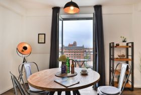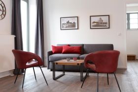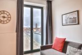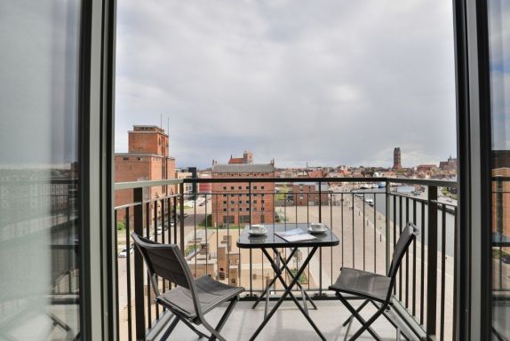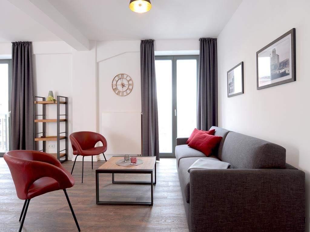 Das 2-Zimmer-Appartement verspricht einen Urlaub der Extraklasse für bis zu 4 Personen. In der 5. Etage gelegen, die leicht durch den Lift zu erreichen ist, bietet dieses exklusive Appartement einen unvergesslichen Urlaub. Die 55m² Wohnfläche sind sehr hochwertig ausgestattet. Der Wohn-/Essbereich mit Fernseher lädt zum Verweilen ein. Über den Wohnbereich gelangen Sie auf den Balkon mit einer spektakulären Aussicht. Die Küche verfügt über Mikrowelle, Geschirrspüler, Kaffeemaschine, Wasserkocher und diverse Kleingeräte. Das stilvoll eingerichtete Schlafzimmer sorgt für erholsame Stunden. Des Weiteren steht Ihnen ein Badezimmer zur Verfügung. Bei Anreise sind 2 Betten bezogen und Handtücher liegen für Sie bereit. WLAN steht Ihnen kostenfrei zur Verfügung. In unmittelbarer Nähe sind öffentliche Parkplätze vorhanden.