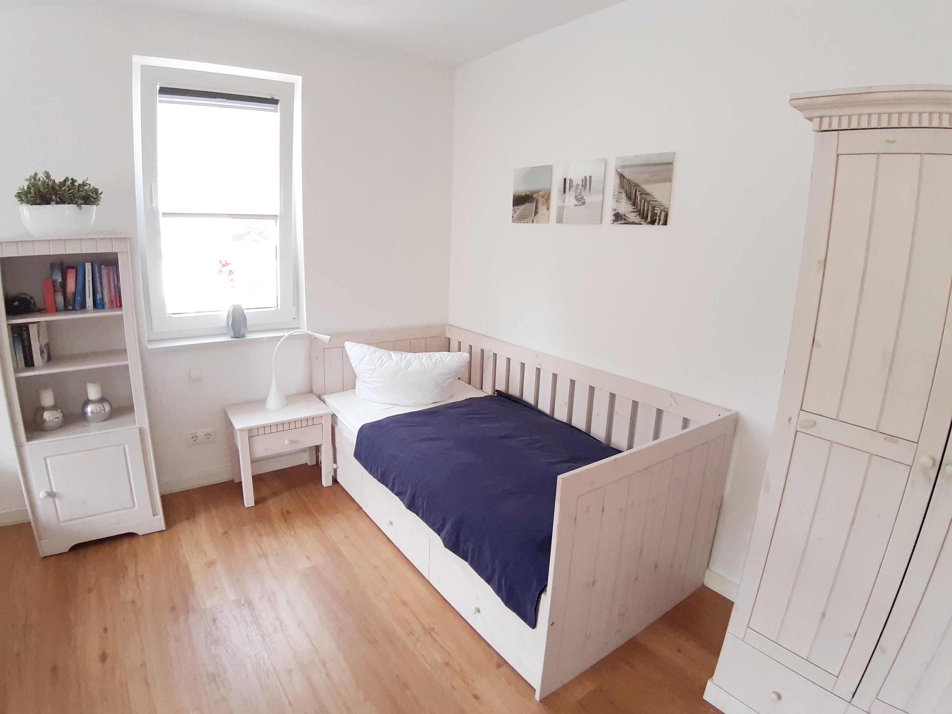 Das Kinderschlafzimmer ist mit einem Einzelbett sowie einem Pflege-/ Krankenbett und Patientenlifter ausgestattet.
