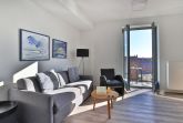 Appartementhaus mit 48 Appartements. Das charmante 2- Zimmer-Appartement lässt sich durch den Lift auf der 5. Etage leicht erreichen. Mit seinen 51 m² Wohnfläche bietet es ausreichend Platz für 4 Personen. Der hell und freundlich eingerichtete Wohn-/Essbereich ist mit einem Sofa und einem TV Gerät ausgestattet. Von dort aus haben Sie direkten Zugang zum Balkon, von dem Sie einen spektakulären Ausblick genießen können. Die hochwertige Küche ist komplett mit Mikrowelle, Geschirrspüler, Kaffeemaschine, Wasserkocher, Kühlschrank und vielem mehr ausgestattet. Im Schlafzimmer sorgt befindet sich ein weiteres TV-Gerät. Das Duschbad ist sehr stilvoll ausgestattet.