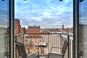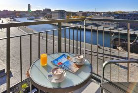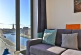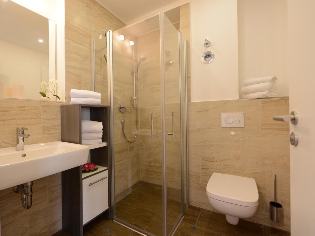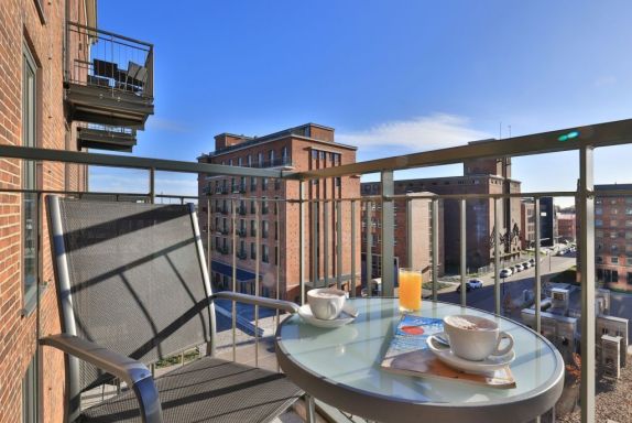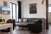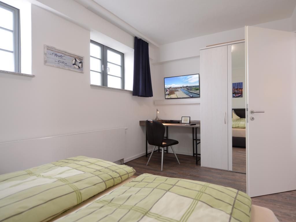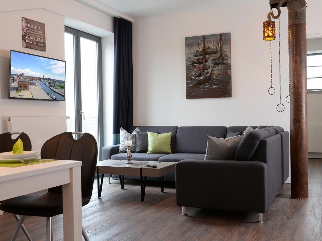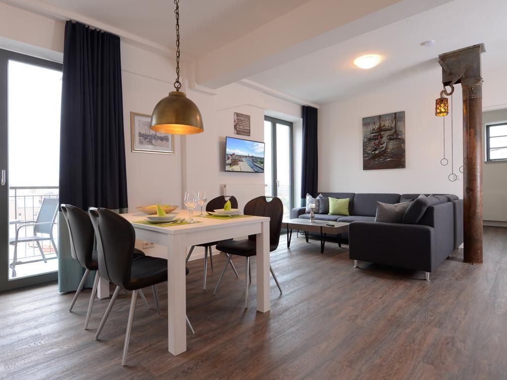 Appartementhaus mit 48 Appartements. Das hochwertig eingerichtete 2-Zimmer-Appartement befindet sich in der 4. Etage des Ohlerich Speichers. Mit seinen 56m² bietet dieses exklusive Appartement genügend Platz für 4 Personen. Der helle Wohnbereich mit Fernseher und integrierter Küche lädt zum Verweilen ein. Die Küche ist komplett ausgestattet u.a. mit einem Geschirrspüler, einem Wasserkocher, einer Kaffeemaschine und einer Mikrowelle. Vom Wohnbereich gelangen Sie auf den Balkon mit Blick auf die schöne Altstadt. Das moderne Schlafzimmer sorgt für erholsamen Schlaf. Außerdem steht Ihnen ein stilvoll eingerichtetes Duschbad zur Verfügung. In der Wohnung haben Sie kostenfreies WLAN. Bei Anreise sind für Sie 2 Betten bezogen und Handtücher liegen bereit. In unmittelbarer Nähe sind öffentliche Parkplätze vorhanden.