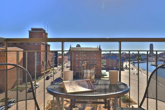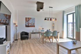 Dieses 56m² große, exklusiv eingerichtete 2-Zimmer-Appartement bietet für bis zu 4 Gästen Platz. Es befindet sich im 4. Obergeschoss , dass Sie leicht über den Lift erreichen. Der gemütliche Wohn-/ Essbereich ist mit einem Sofa, einem Fernseher und einer Essecke komfortabel ausgestattet. Von dort aus haben Sie direkten Zugang zum Süd/Ost Balkon und genießen einen traumhaften Blick auf die wunderschöne Altstadt Wismars. Eine separate Küche (Mikrowelle, Geschirrspüler, Herd und vieles mehr) ist hochwertig eingerichtet. Des Weiteren steht Ihnen ein stilvolles Duschbad zur Verfügung. Im Schlafbereich erwartet Sie ein gemütliches Doppelbett.Bei Anreise sind 2 Betten bezogen und Handtücher liegen für Sie bereit. WLAN steht Ihnen kostenfrei zur Verfügung. In unmittelbarer Nähe sind öffentliche Parkplätze vorhanden.