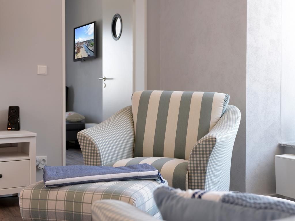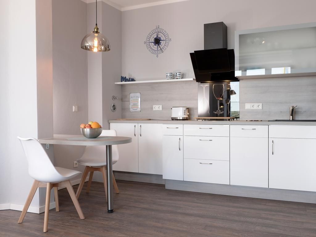 Appartementhaus mit 48 Appartements. Das stilvoll eingerichtete 2-Zimmer-Appartement befindet sich in der 3. Etage des Ohlerich Speichers. Die Wohnung ist 57m² groß und verfügt über ein komfortables Wohnzimmer mit Fernseher und integrierter Küche. Diese ist komplett mit einem Kühlschrank, einer Mikrowelle, einem Geschirrspüler, einem Wasserkocher und einer Kaffeemaschine und vielem mehr ausgestattet. Das hochwertig eingerichtete Schlafzimmer lädt zum Verweilen ein. Außerdem können Sie sich in dem wunderschön gestalteten Badezimmer entspannen und die Seele baumeln lassen. Bei Anreise sind die Betten bezogen und Handtücher liegen für Sie bereit. WLAN steht für Sie kostenfrei zur Verfügung. In unmittelbarer Nähe sind öffentliche Parkplätze vorhanden.