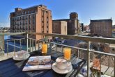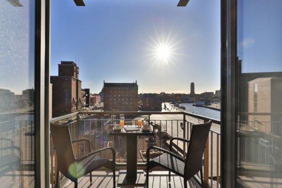 Direkt an der Spitze des Wismarer Hafens befindet sich dieses außergewöhnliche Bauwerk. Der Ohlerich Speicher ist ein ehemaliger Getreidespeicher, der 2018 komplett saniert wurde. Jetzt verfügt er über 48 sehr exklusive Ferienappartements und einen Lift.