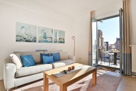 Das 2-Zimmer-Appartemet ist 55m² groß und befindet sich im dritten Obergeschoss, dass Sie über den Lift Problemlos erreichen. Maximal 4 Personen können einen traumhaften Urlaub mit Blick auf die wunderschöne Altstadt Wismars in dieser Ferienwohnung verbringen. Der modern eingerichtete Wohn- und Essbereich sowie die voll ausgestattete Küche lassen keine Wünsche offen. Vom Wohnbereich haben Sie direkten Zugang zum Süd/Ost Balkon. Das elegante Schlafzimmer ist mit einem Doppelbett und einem weiteren TV-Gerät ausgestattet. Das Duschbad ist sehr hochwertig eingerichtet. Bei Anreise sind 2 Betten bezogen und Handtücher liegen für Sie bereit. WLAN steht Ihnen kostenfrei zur Verfügung. In unmittelbarer Nähe sind öffentliche Parkplätze vorhanden.