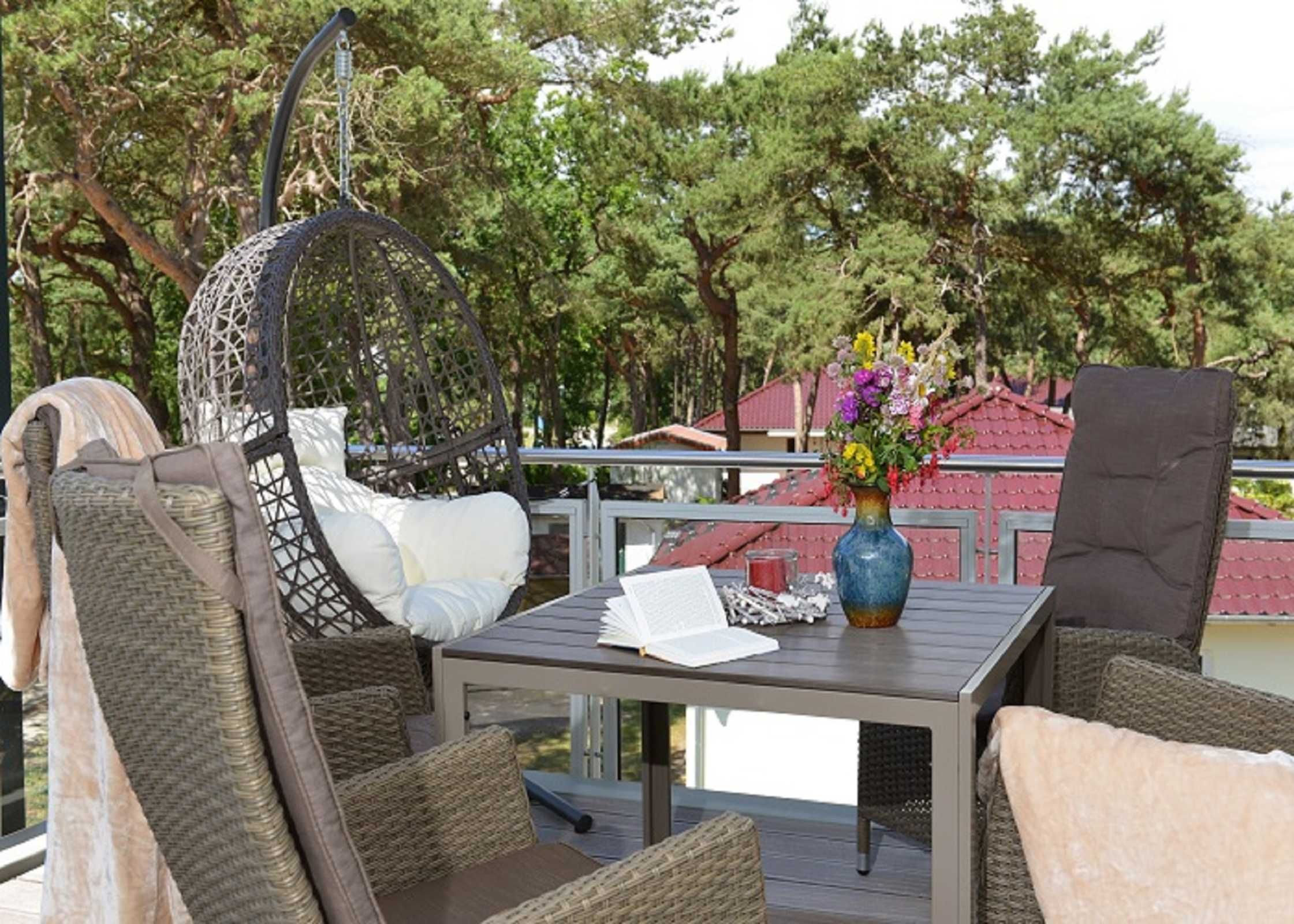 Balkon mit Gartenmöbeln und Schaukelsitz
