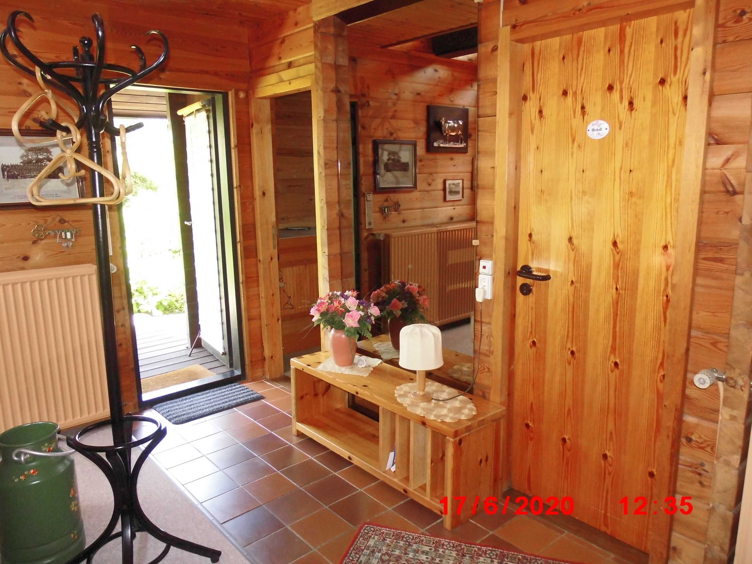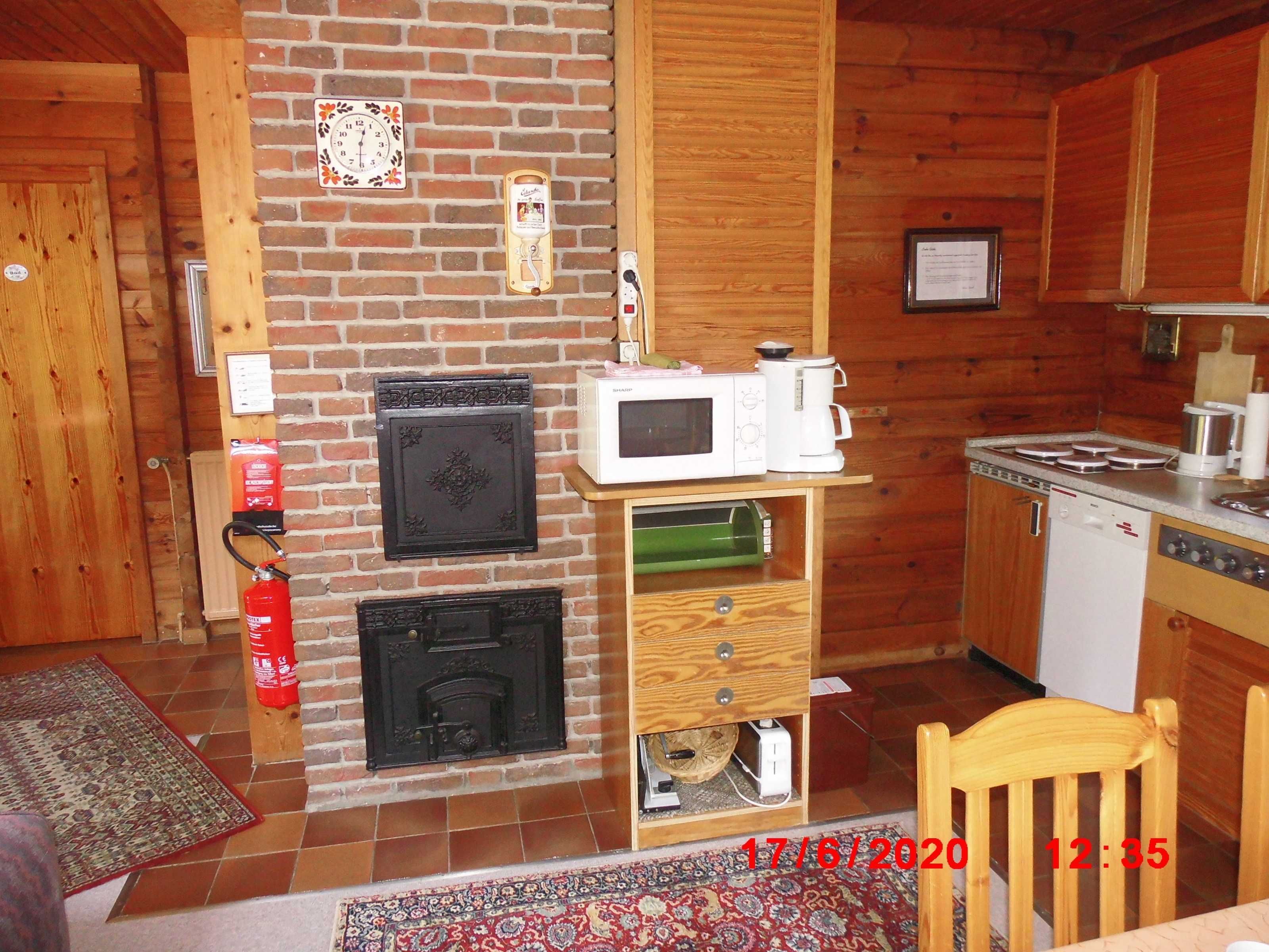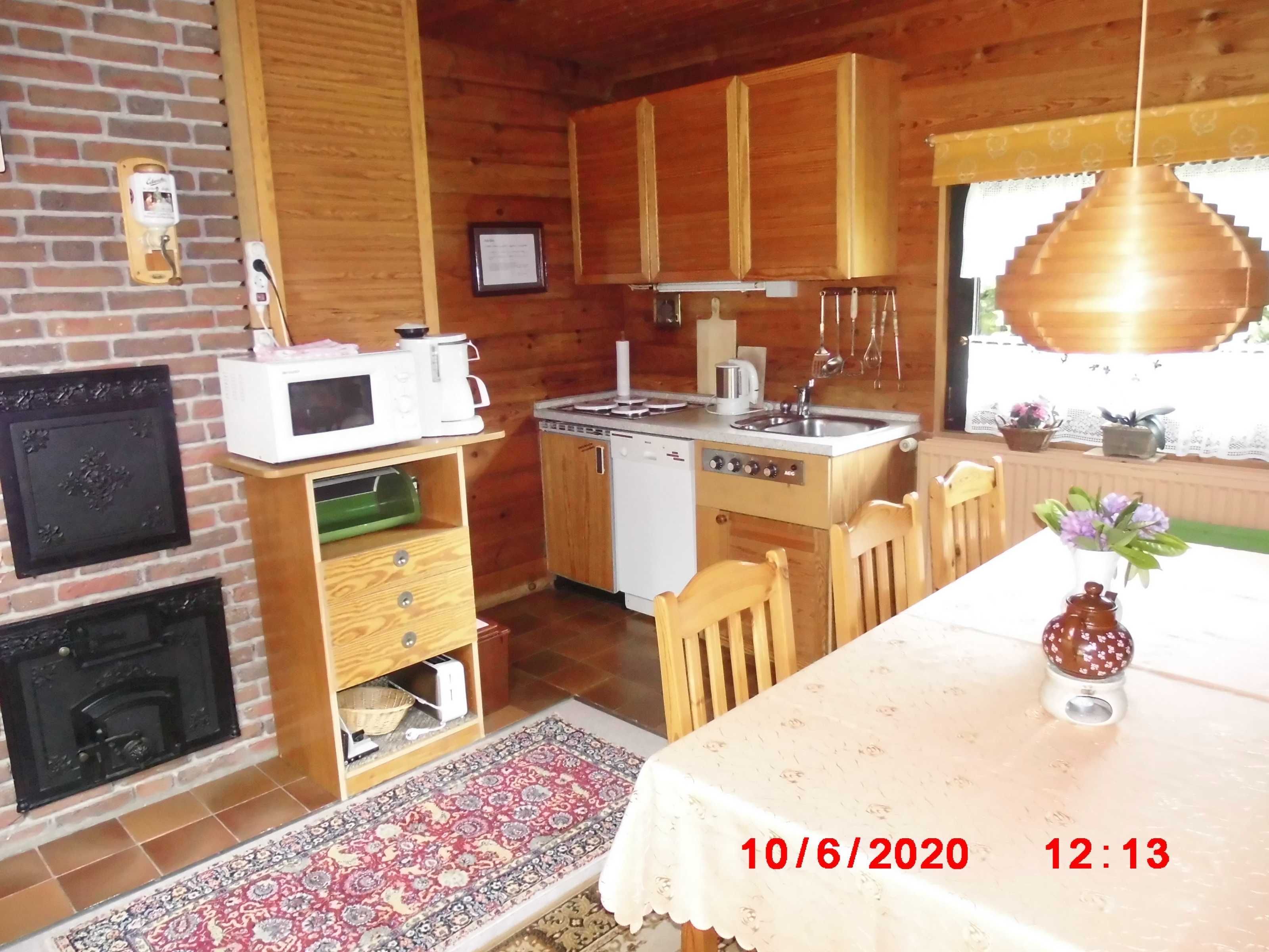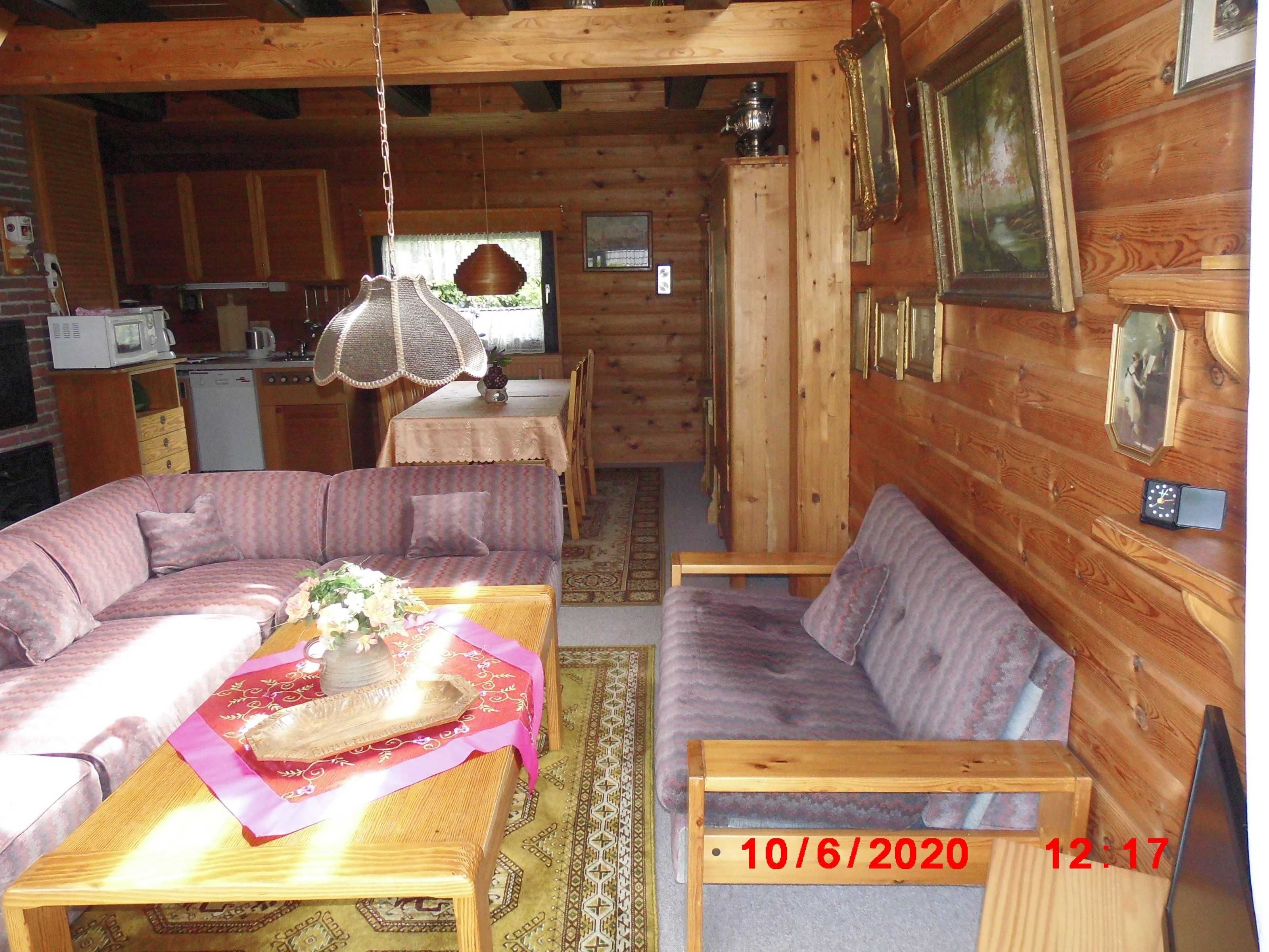 Gemütlich eingerichtetes Ferien-Holzblockhaus in Dörphof-Karlberg zwischen Ostsee und Schlei.