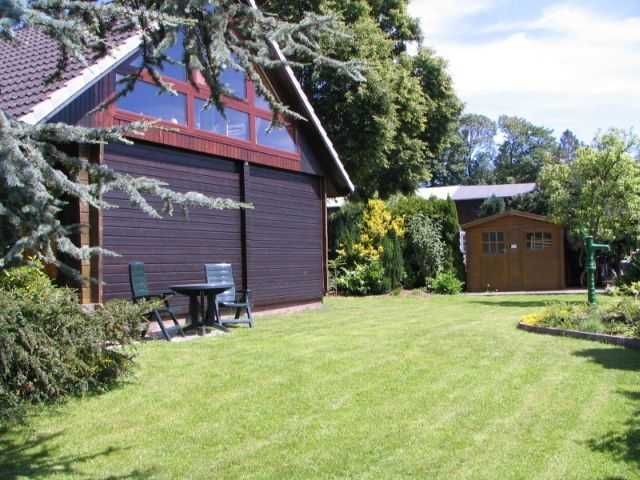 Ca. 500 m² großer Garten mit Sonnenwiese, Terrasse mit Gartenmöbeln und Grillmöglichkeit. Ein Parkplatz befindet sich direkt am Haus.