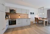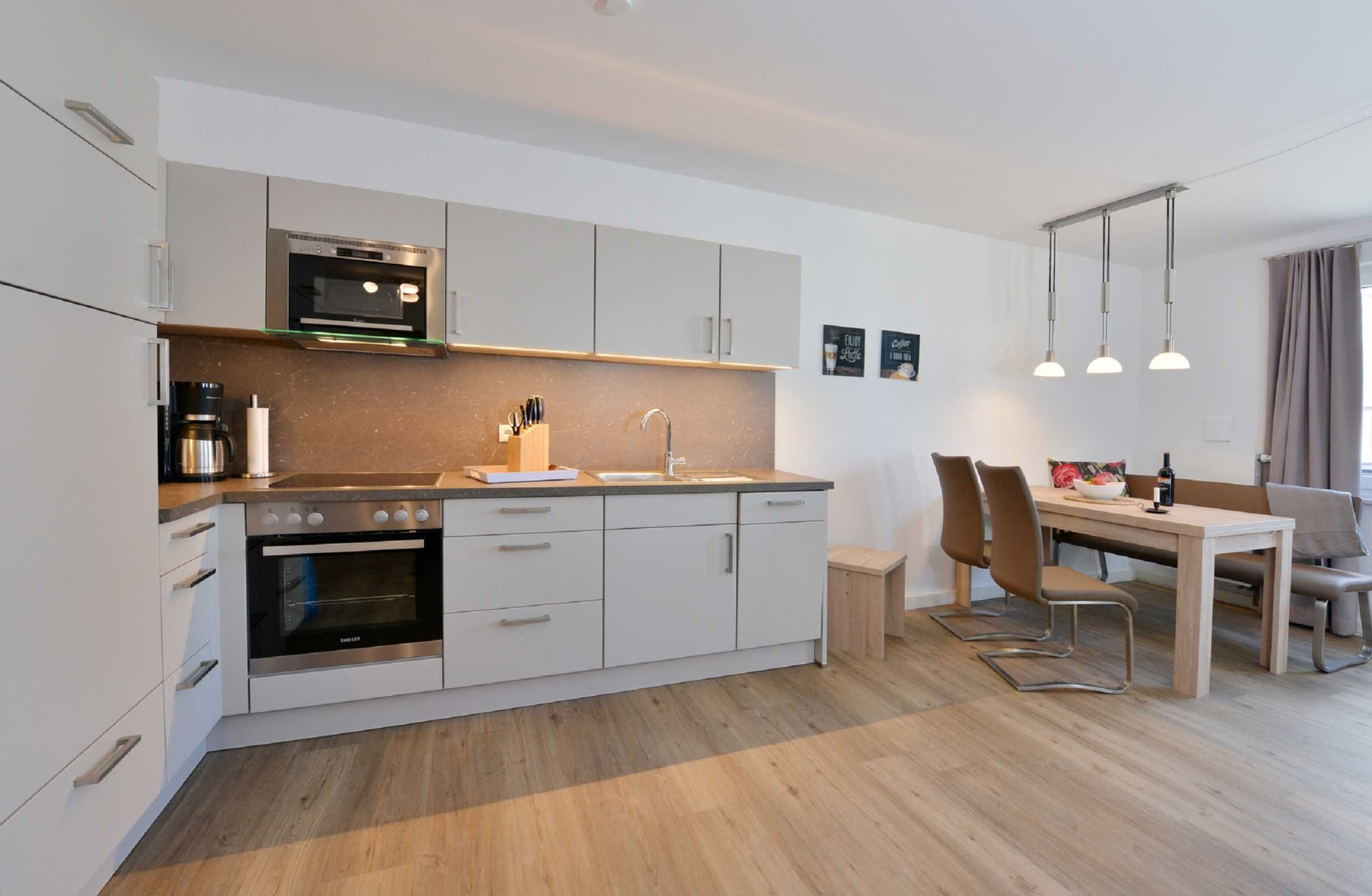 Küche mit Backofen, Mikrowelle, Spülmaschine, Kühlschrank mit Gefrierfach