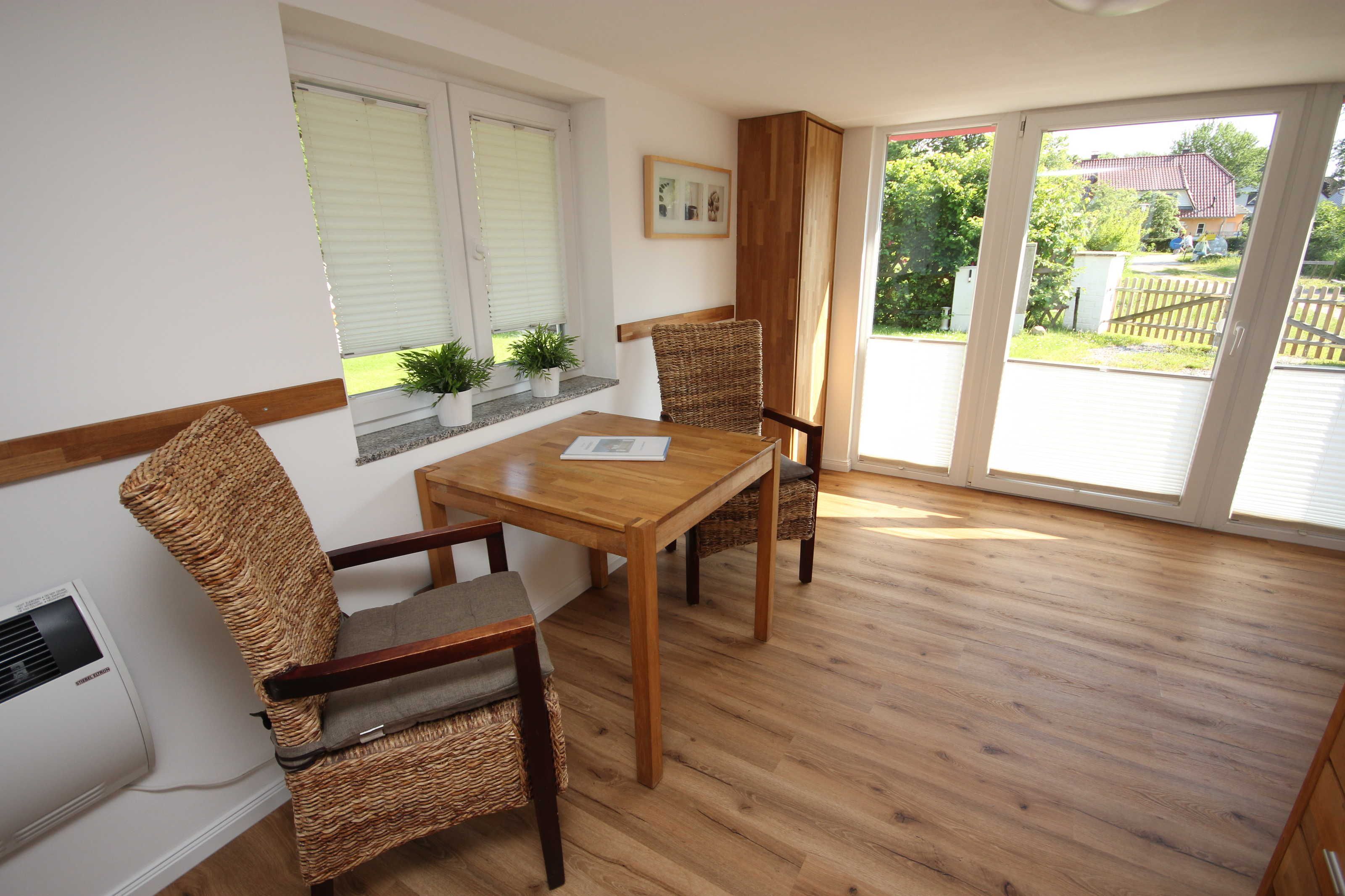 das rügen-typische mit Reet gedeckte kleine Ferienhaus in Dierhagen verfügt über eine gemütliche und romantische Einrichtung und bietet genügend Platz für zwei Personen. Im Wohnbereich des Ferienhauses finden Sie einen TV mit SAT- Anlage sowie einen Esstisch, der Platz für bis zu 2 Personen bietet. Der offene Küchenbereich bietet mit einem E- Herd (zwei Kochplatten und Backofen) und einem Kühlschrank mit Gefrierkombination verschiedene Möglichkeiten, regionale Gerichte auszuprobieren. Das helle und modern designte Badezimmer ist mit einem WC und einer ebenerdigen Dusche ausgestattet. Deckenhöhe im Schlafzimmer ca. 1,80 m und einem Doppelbett 1,80 x 2,00 m (getrennte Matratzen). Unser Haus ist ein Nichtraucherhaus und ist mit WLAN ausgestattet. Die Bettwäsche ist inklusive, Handtücher können in der Zimmervermittlung für 7,00 € pro Person (1 Badetuch, 1 Handtuch) hinzugebucht werden.
