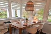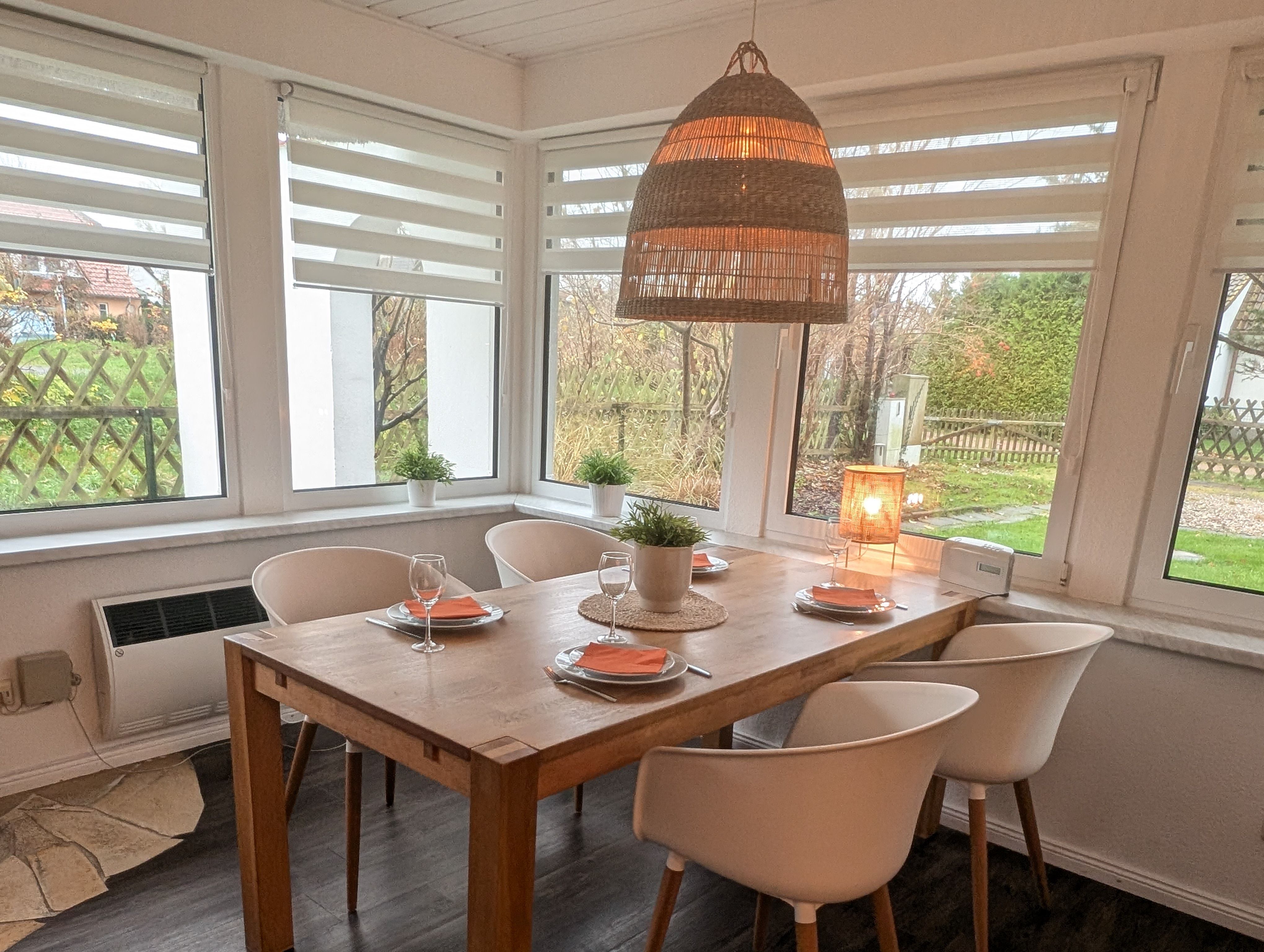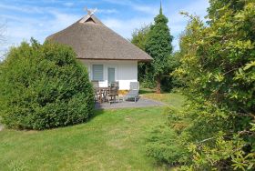 Die Terrasse des großen Ferienhauses an der Ostsee bietet vielseitige Möglichkeiten, an warmen Sommertagen in gemütlicher Atmosphäre ausklingen zu lassen. Dazu stehen für Sie Gartenmöbel bereit. Grundstück mit 2 Ferienhäusern, bietet auch die Möglichkeit mit Freunden gemeinsame Urlaube zu gestalten.